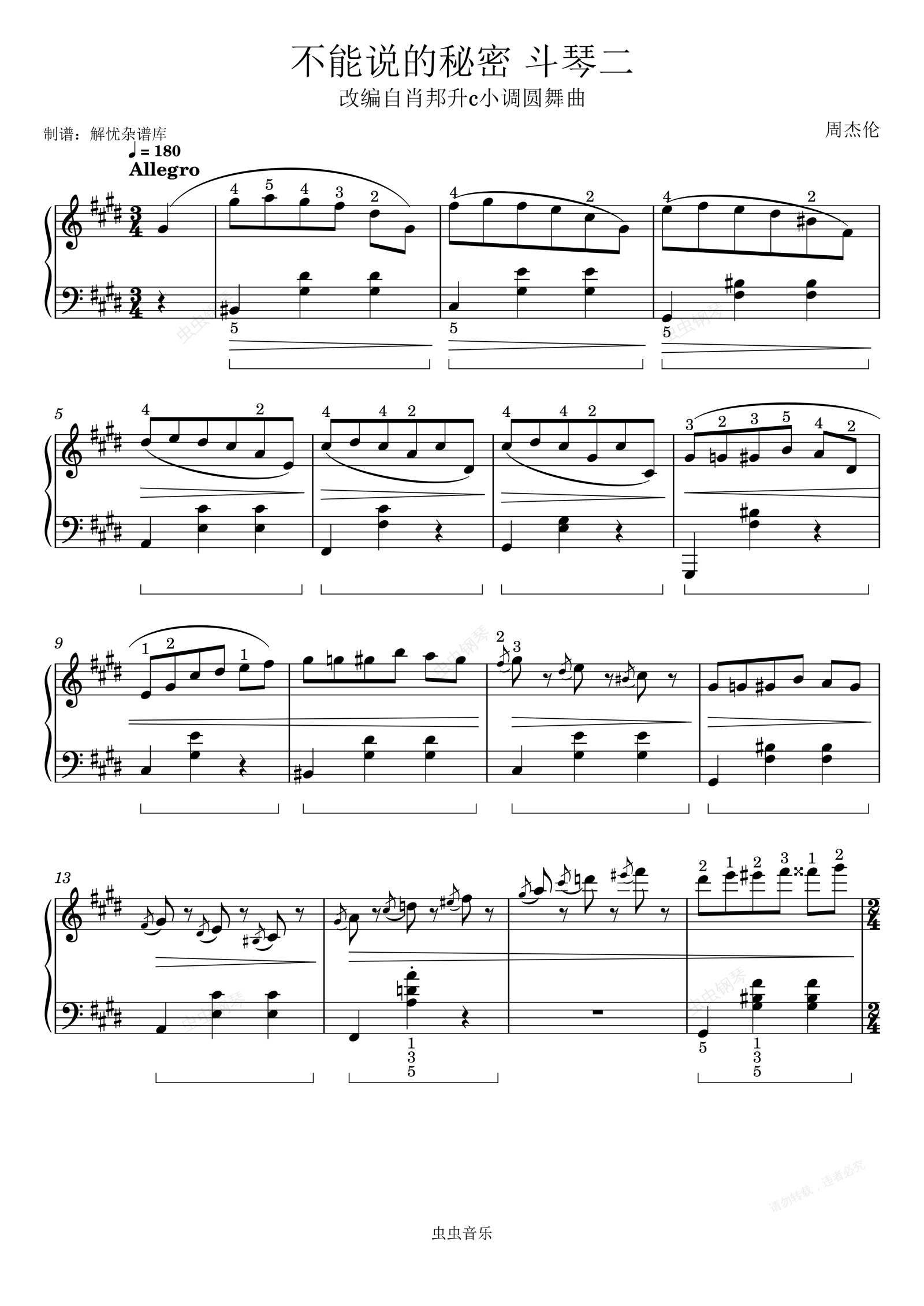 钢琴谱:斗琴(不能说的秘密)