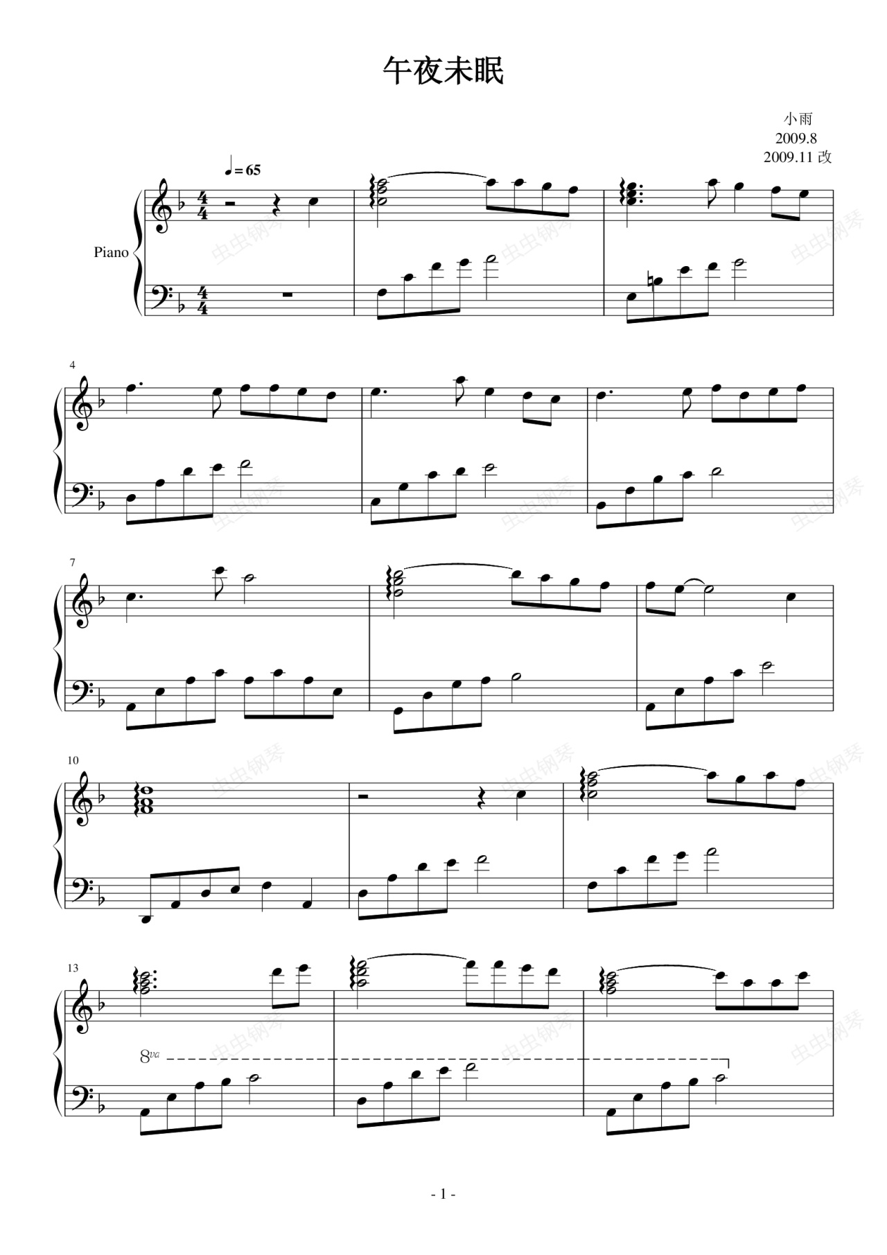 钢琴谱:午夜未眠