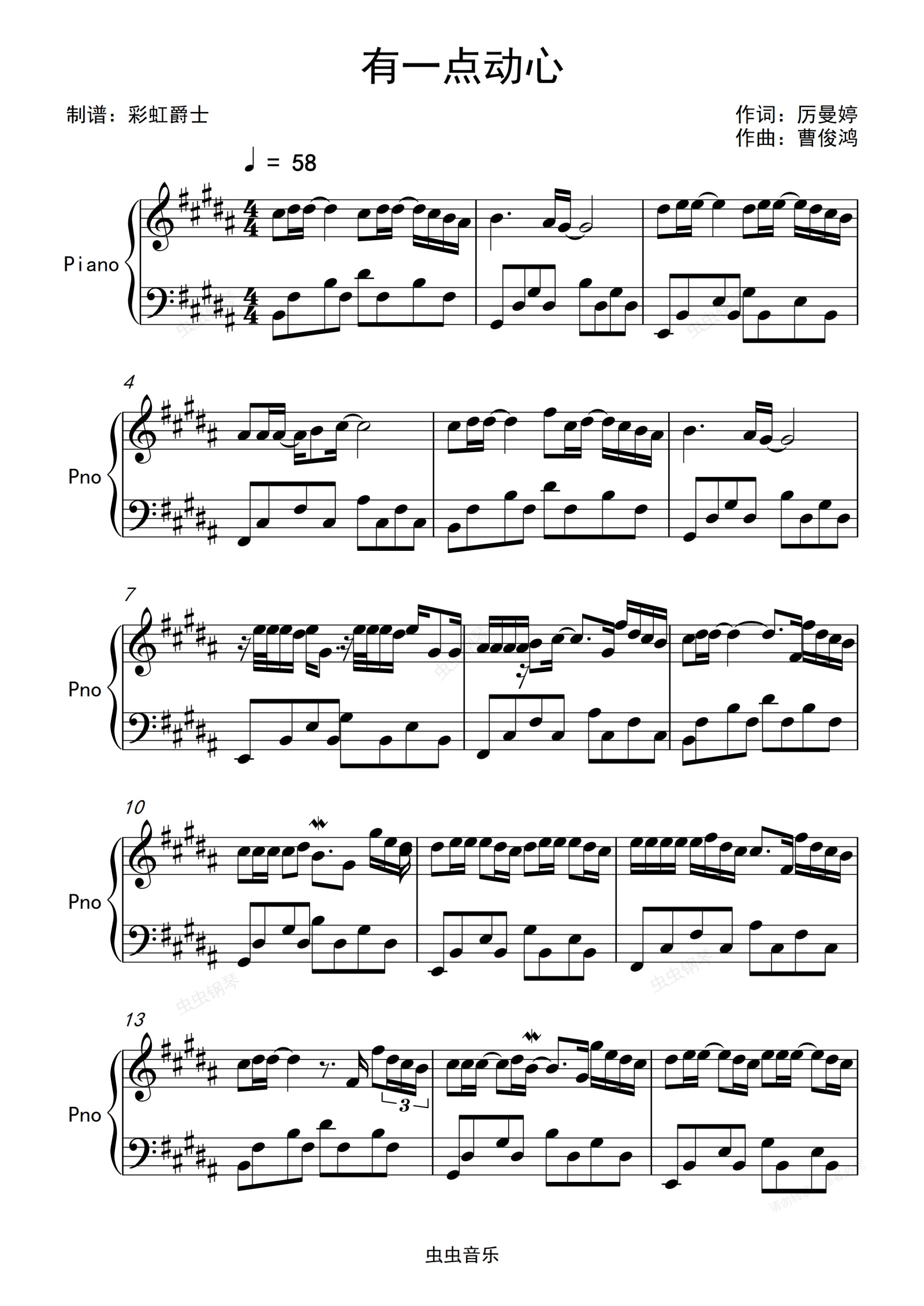 钢琴谱:有一点动心-简单版 张信哲 刘嘉玲
