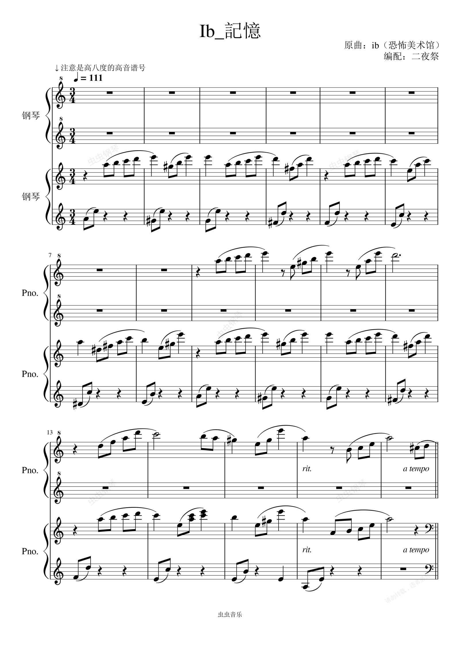 钢琴谱:【Ib / 恐怖美术馆】Ib_記憶【四手联弹】【还原向】