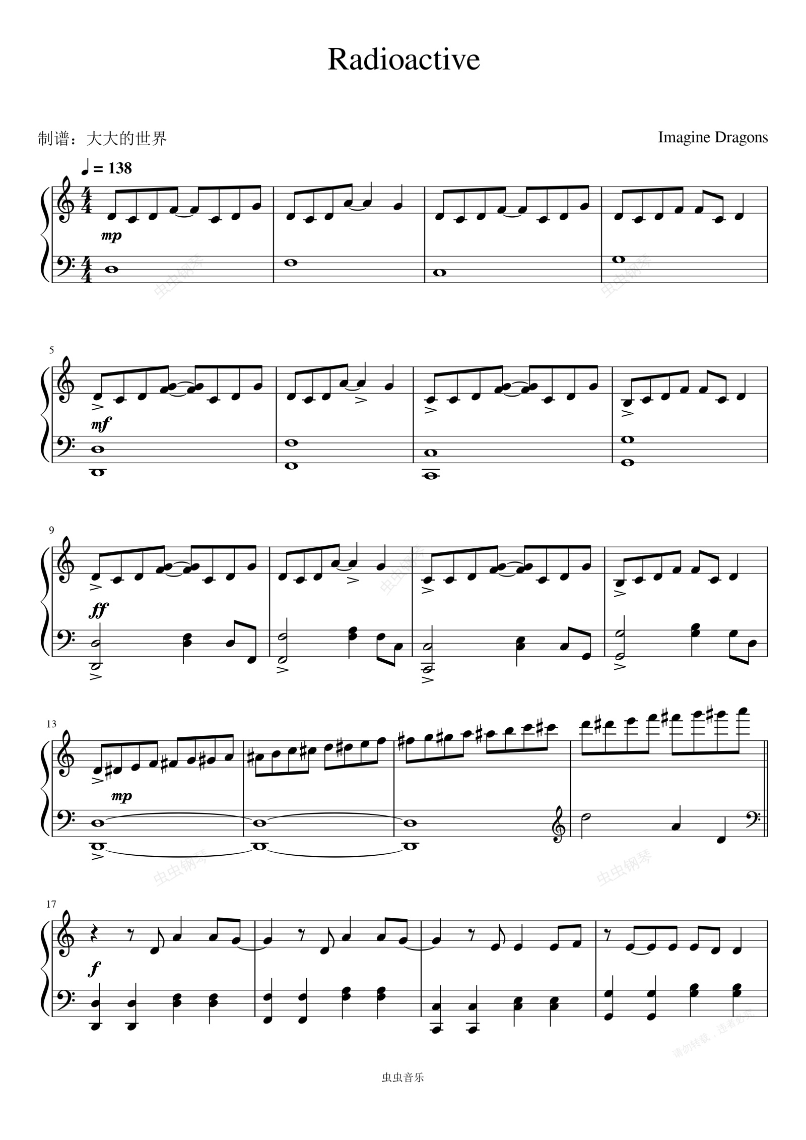 钢琴谱:Radioactive(Imagine Dragons)