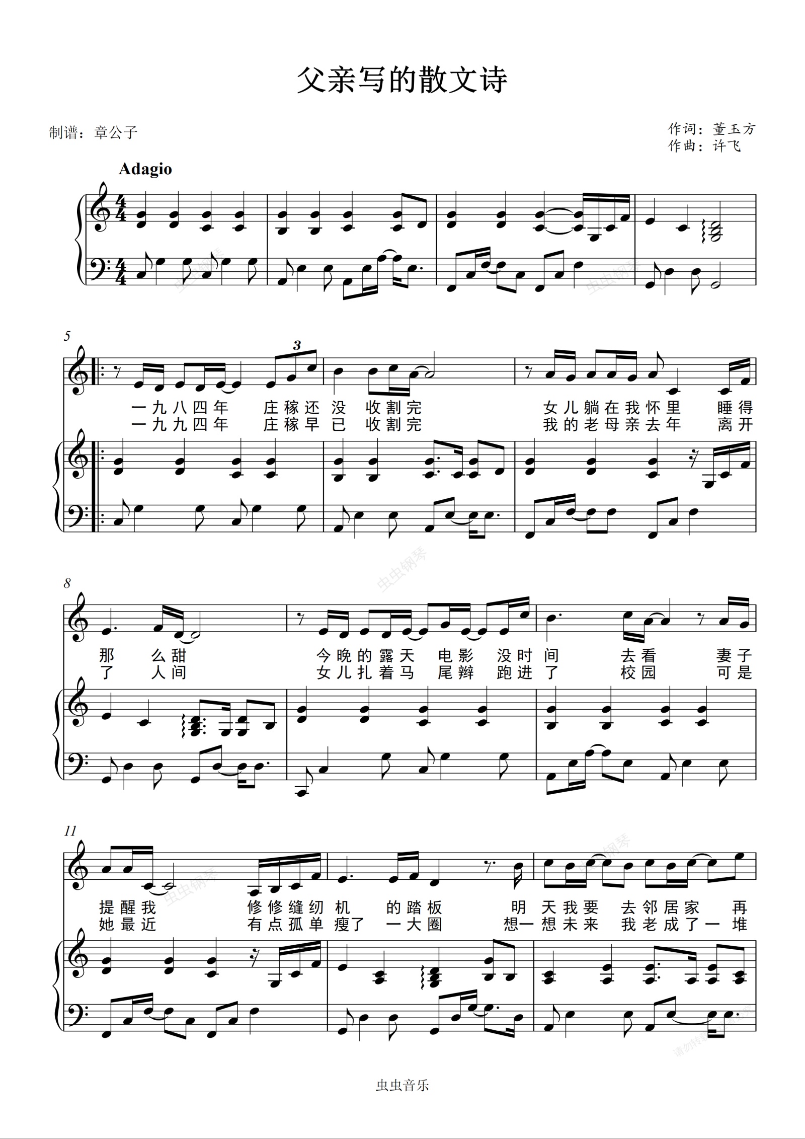 钢琴谱:《父亲写的散文诗》- 许飞 男声C调版弹唱谱