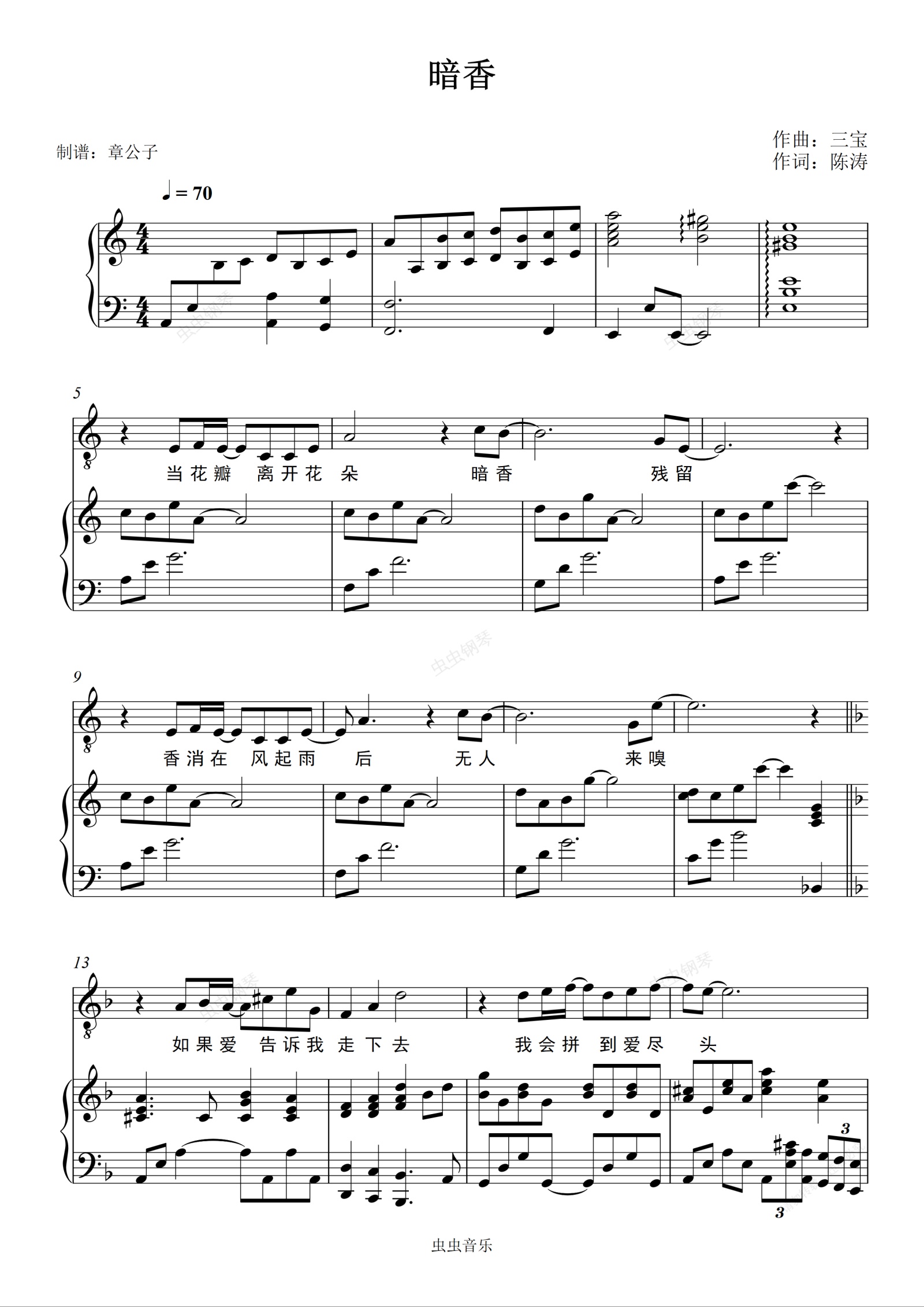 钢琴谱:《暗香》- 沙宝亮 精编精简弹唱(伴奏)谱