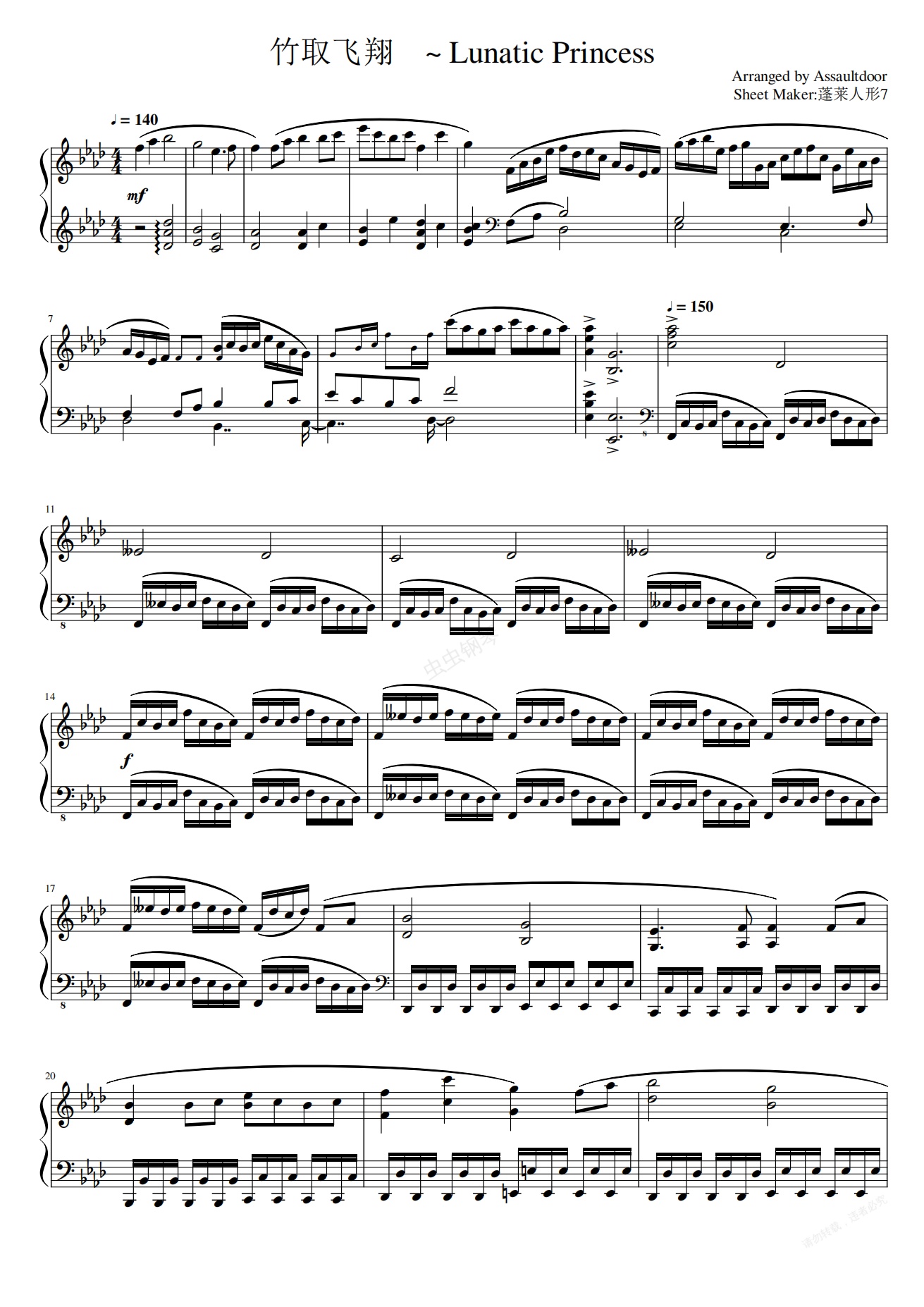 钢琴谱:【Assaultdoor】竹取飞翔