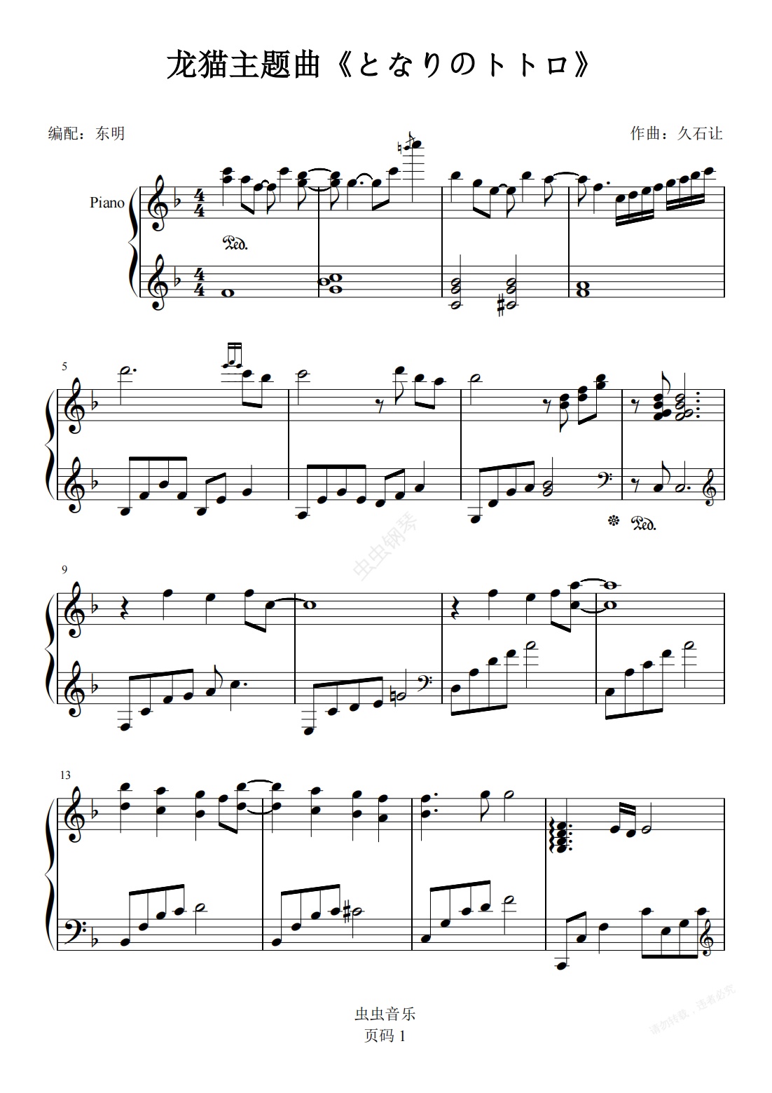 钢琴谱:(清新版)龙猫主题曲《となりのトトロ》 久石让