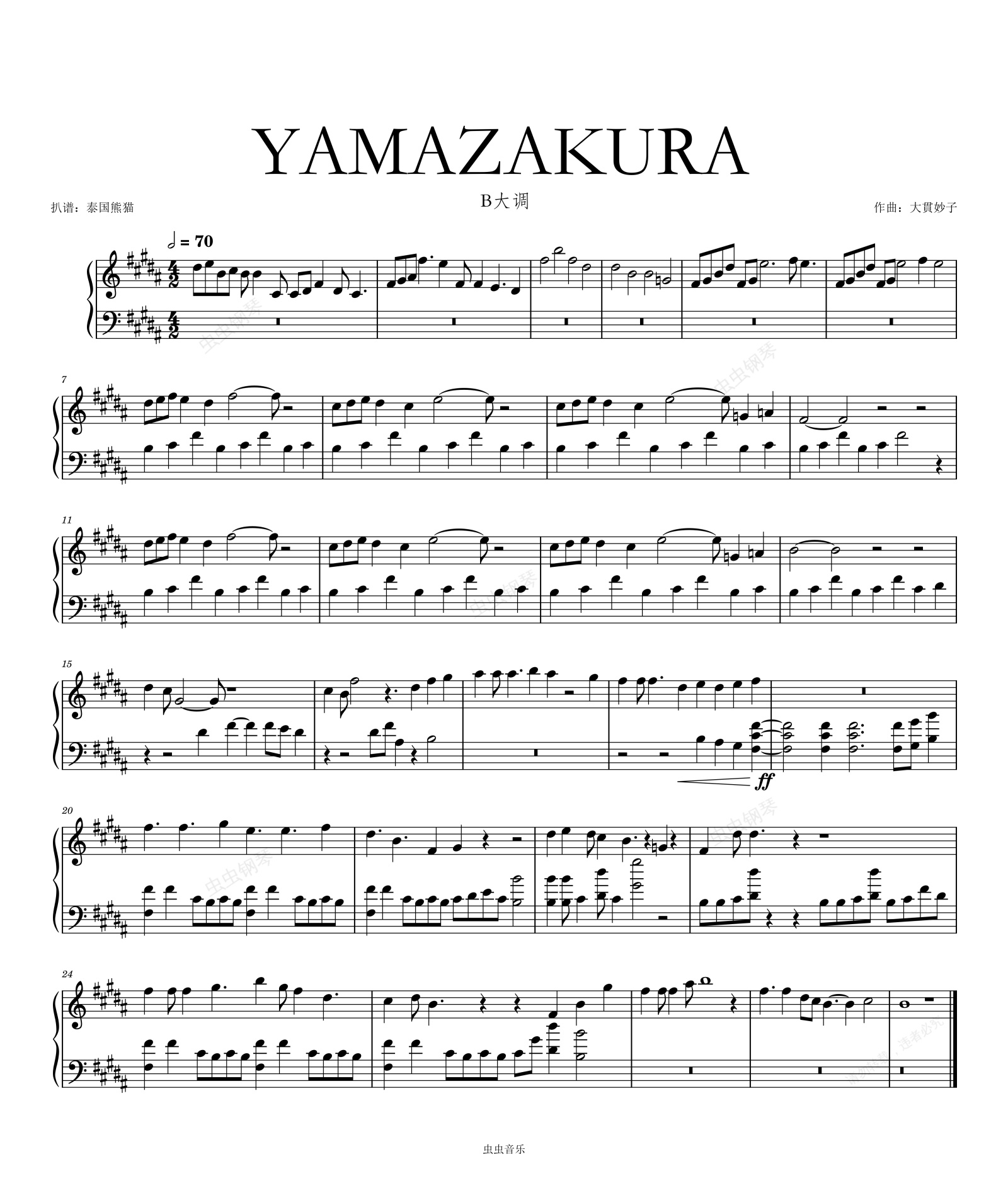 钢琴谱:大貫妙子 - YAMAZAKURA B大调