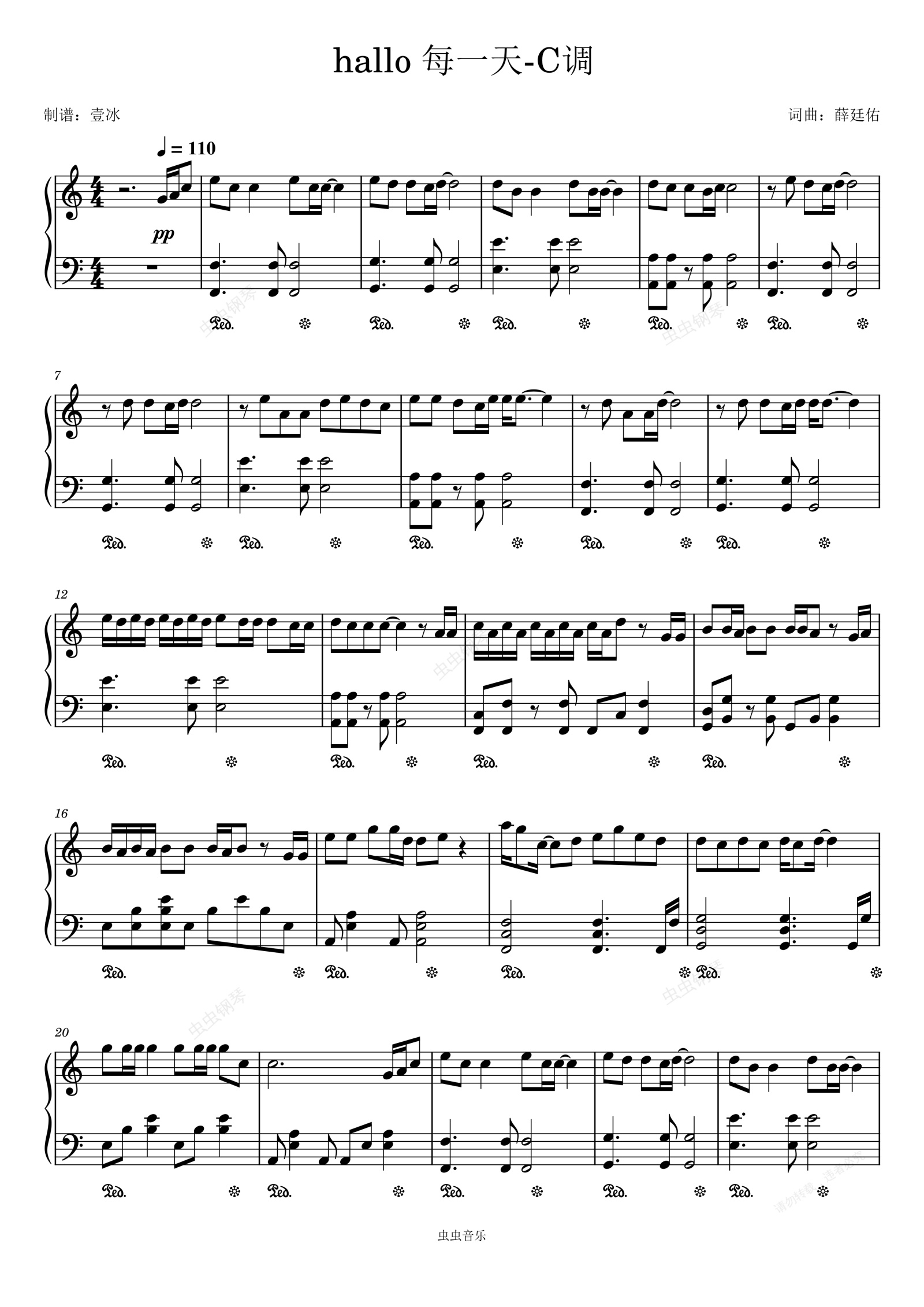 钢琴谱:hallo每一天//薛廷佑-C调版