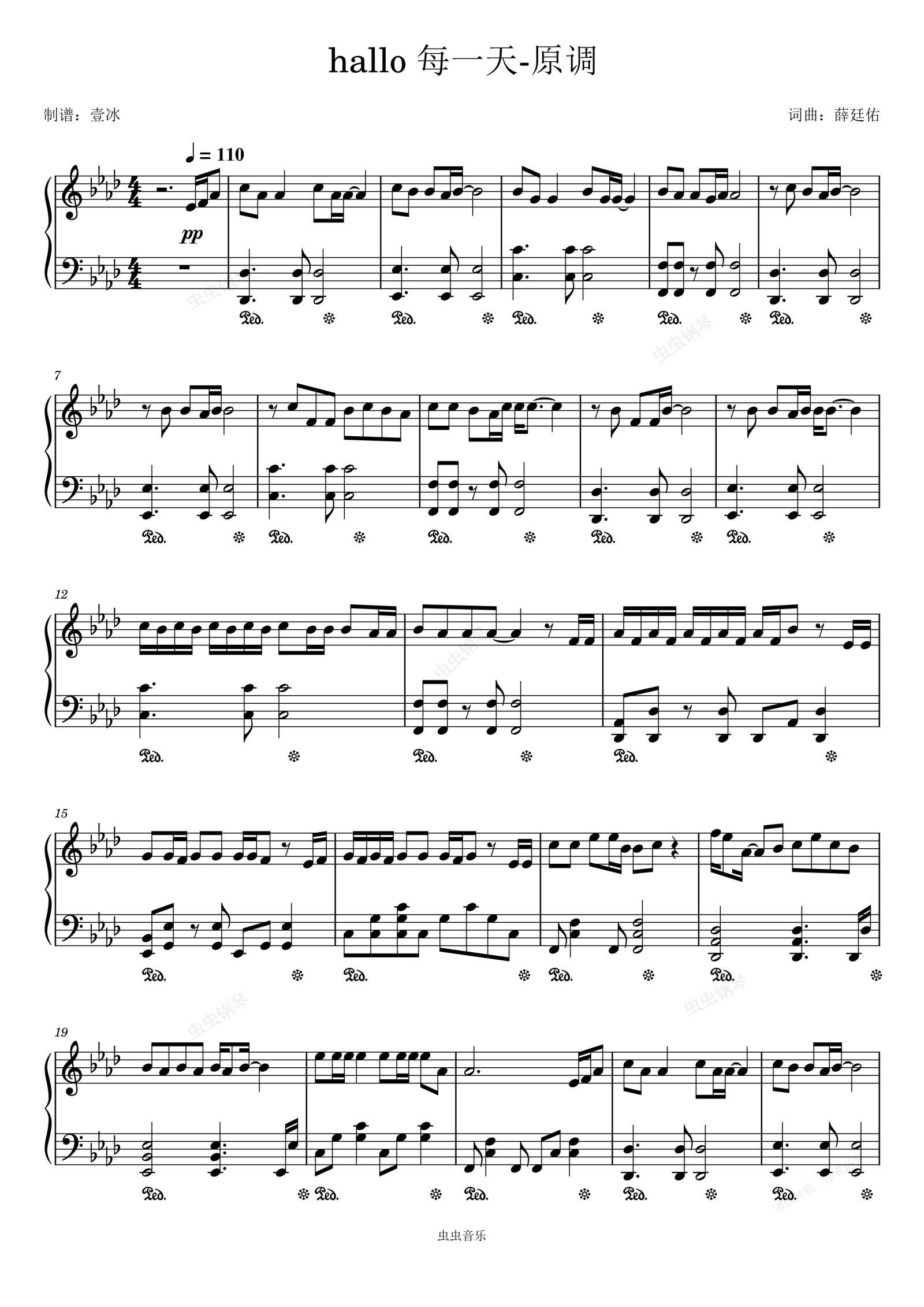 钢琴谱:hallo每一天//薛廷佑-原调版