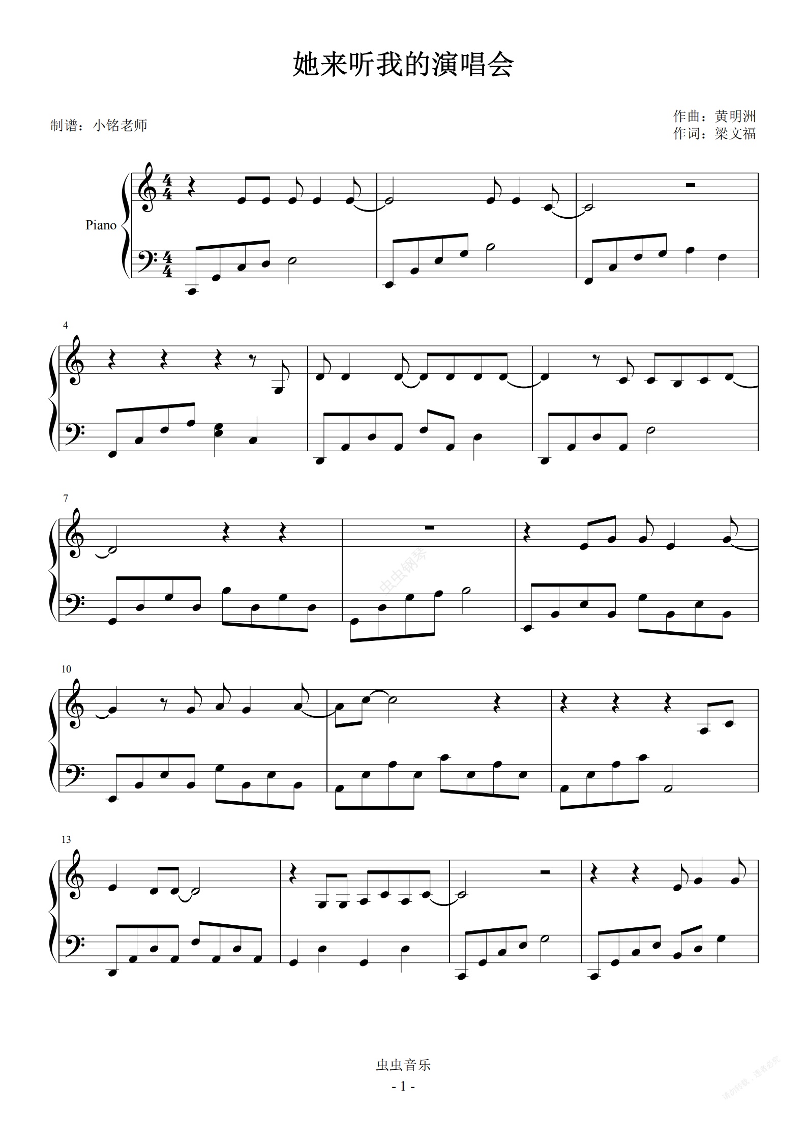钢琴谱:她来听我的演唱会 [简易 动听】