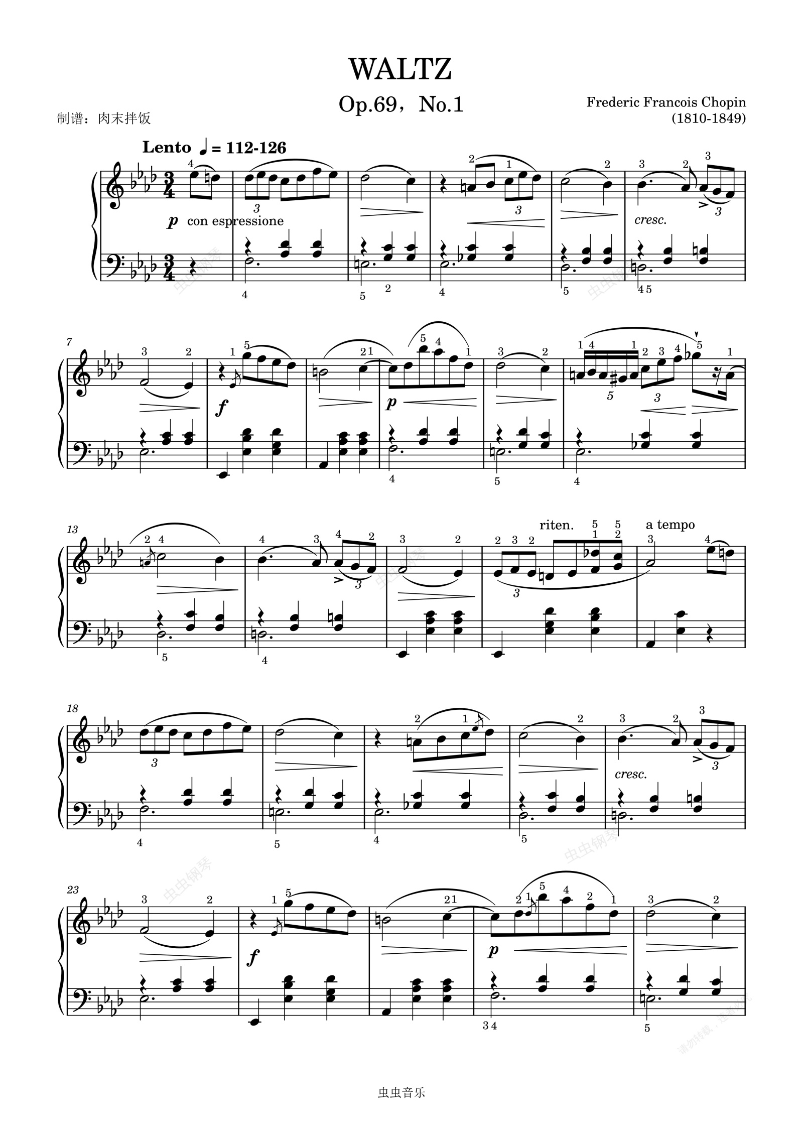 钢琴谱:圆舞曲《离别》Op.69,No.1-肖邦(Frederic Francois Chopin)