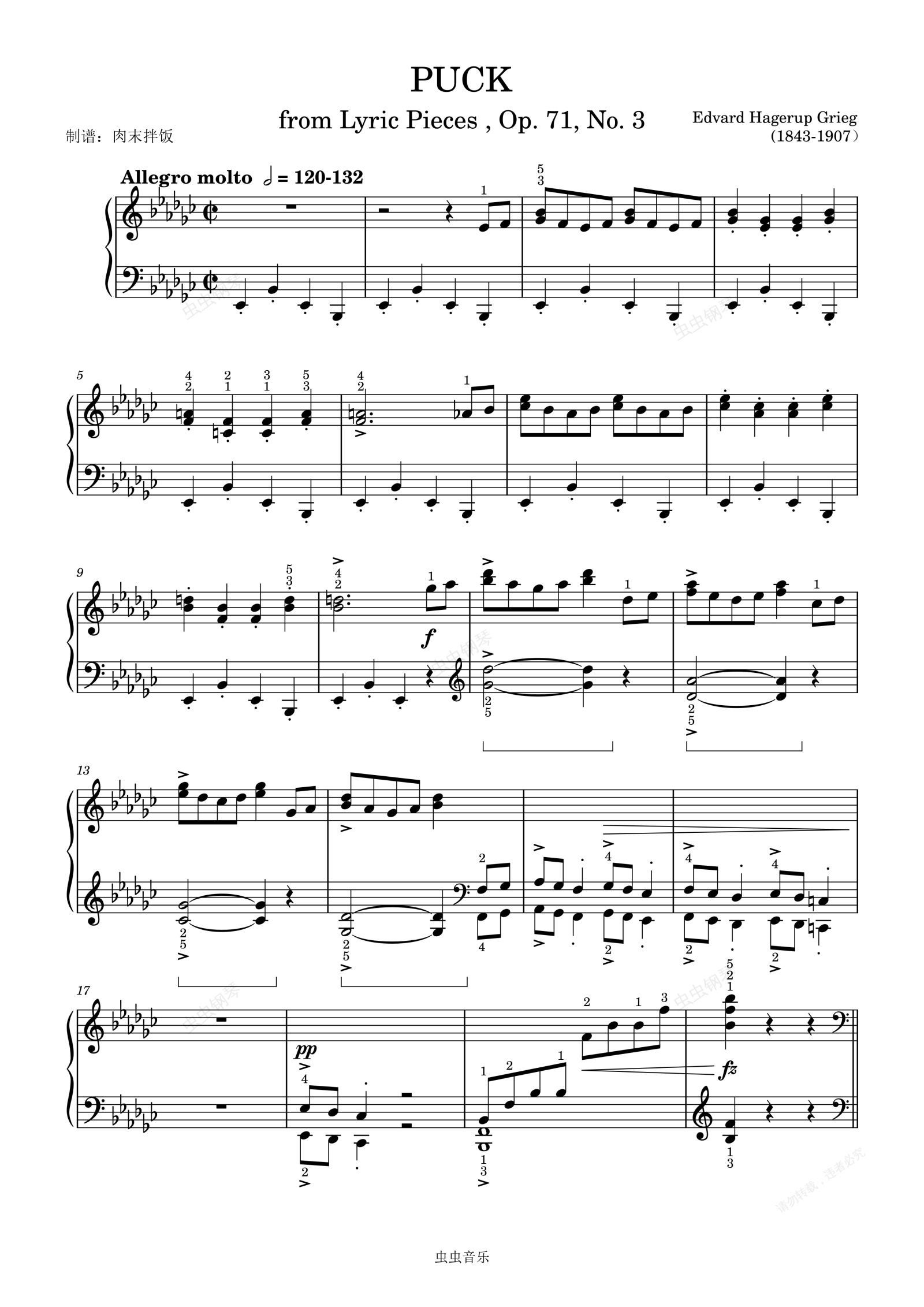 钢琴谱:《精灵之舞》/《山妖》格里格抒情小品Op. 71,No. 3-爱德华·格里格(Edvard Hagerup Grieg)