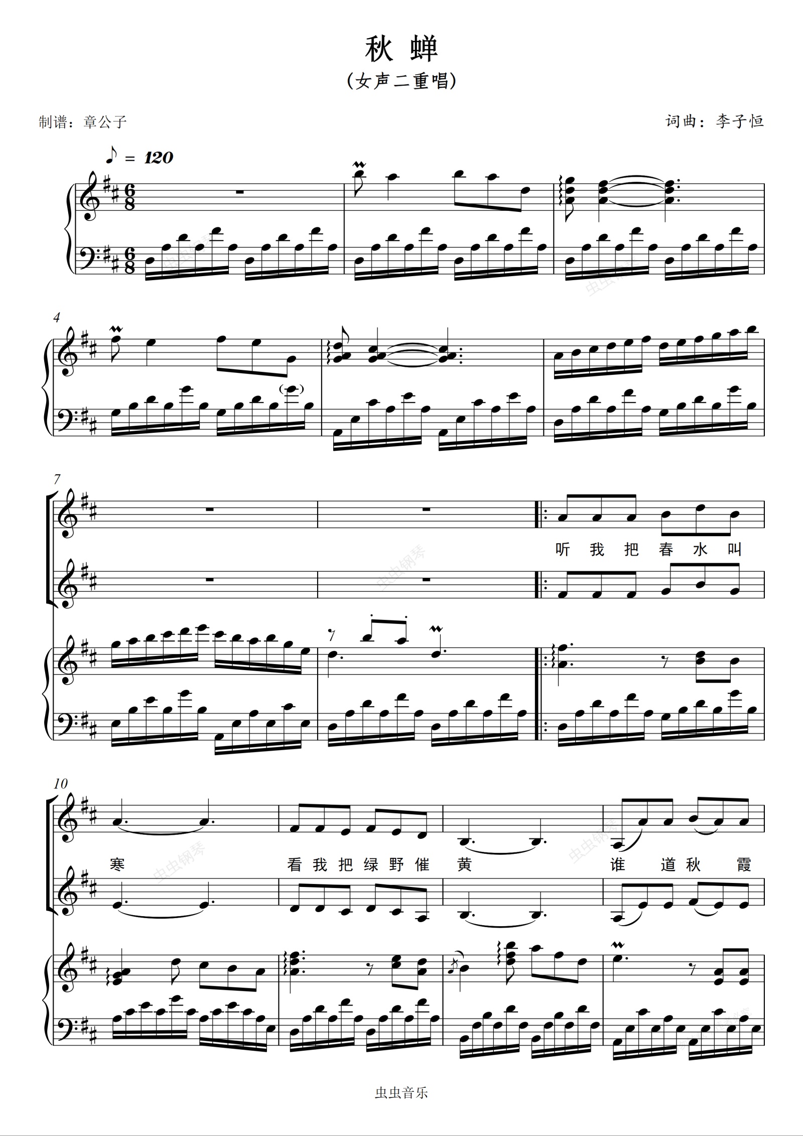 钢琴谱:《秋蝉》- 杨芳仪/徐晓菁 女声二重唱弹唱(伴奏)谱