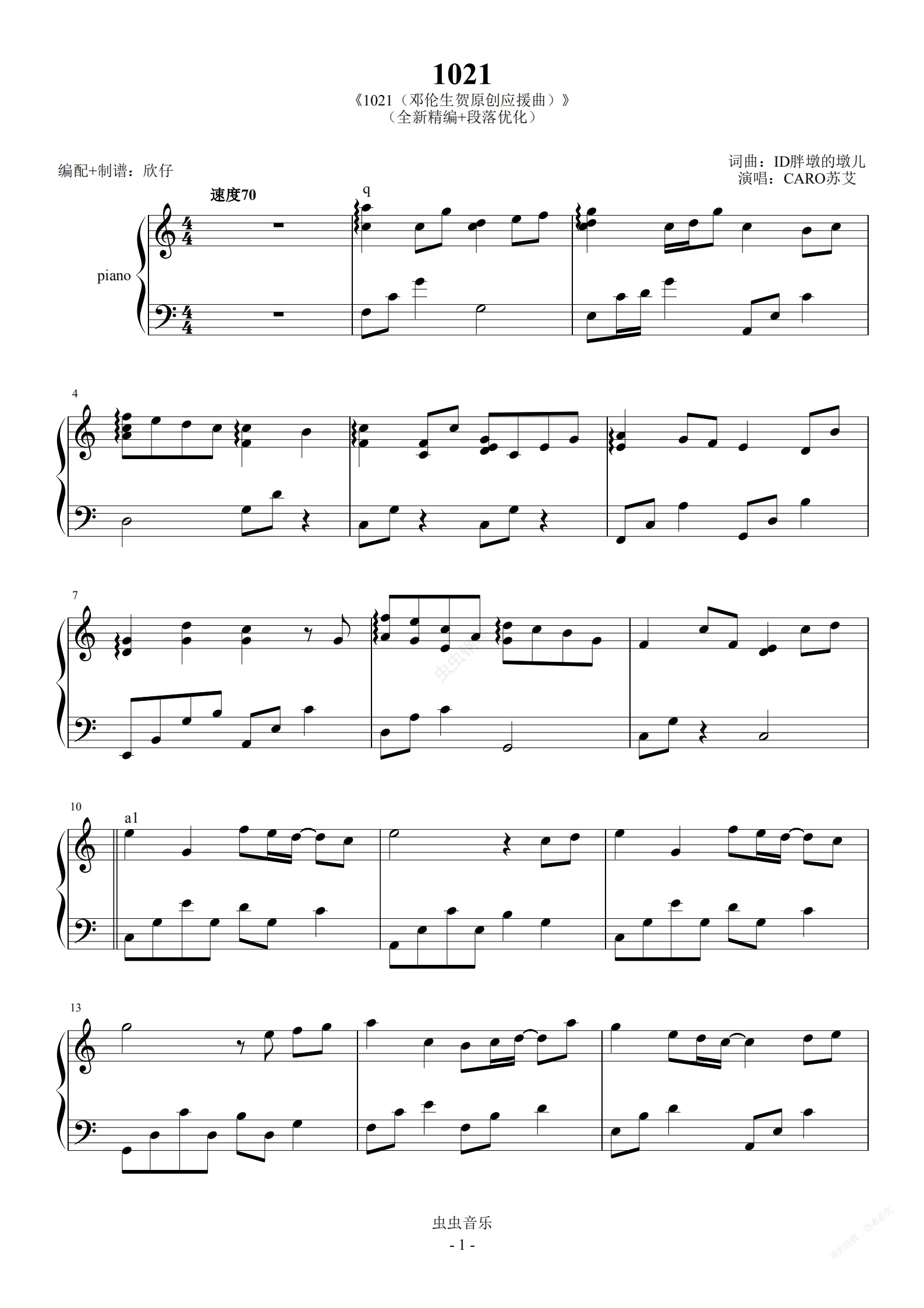 钢琴谱:1021(邓伦生贺原创应援曲)