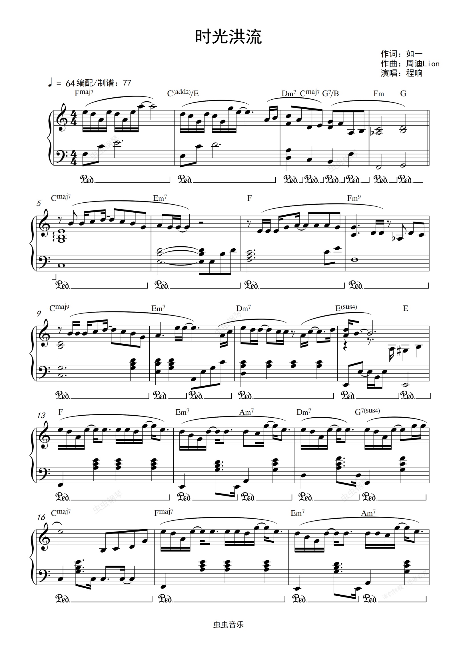 钢琴谱:程响-《时光洪流》高度还原 钢琴独奏谱