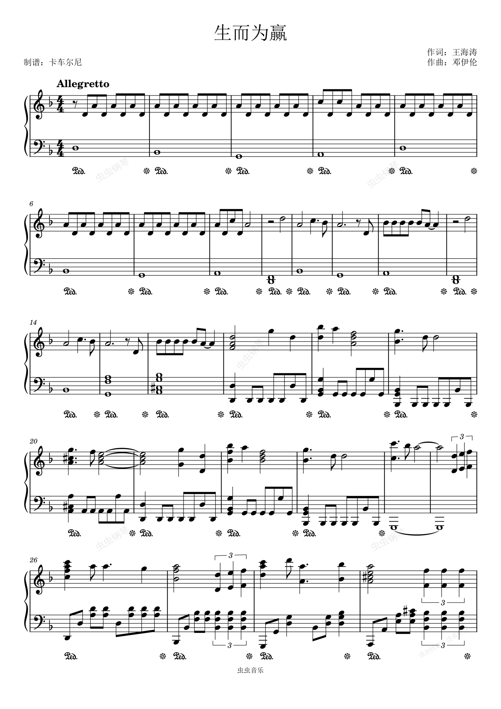钢琴谱:周深演唱《生而为赢》高燃版 iQOO合作曲