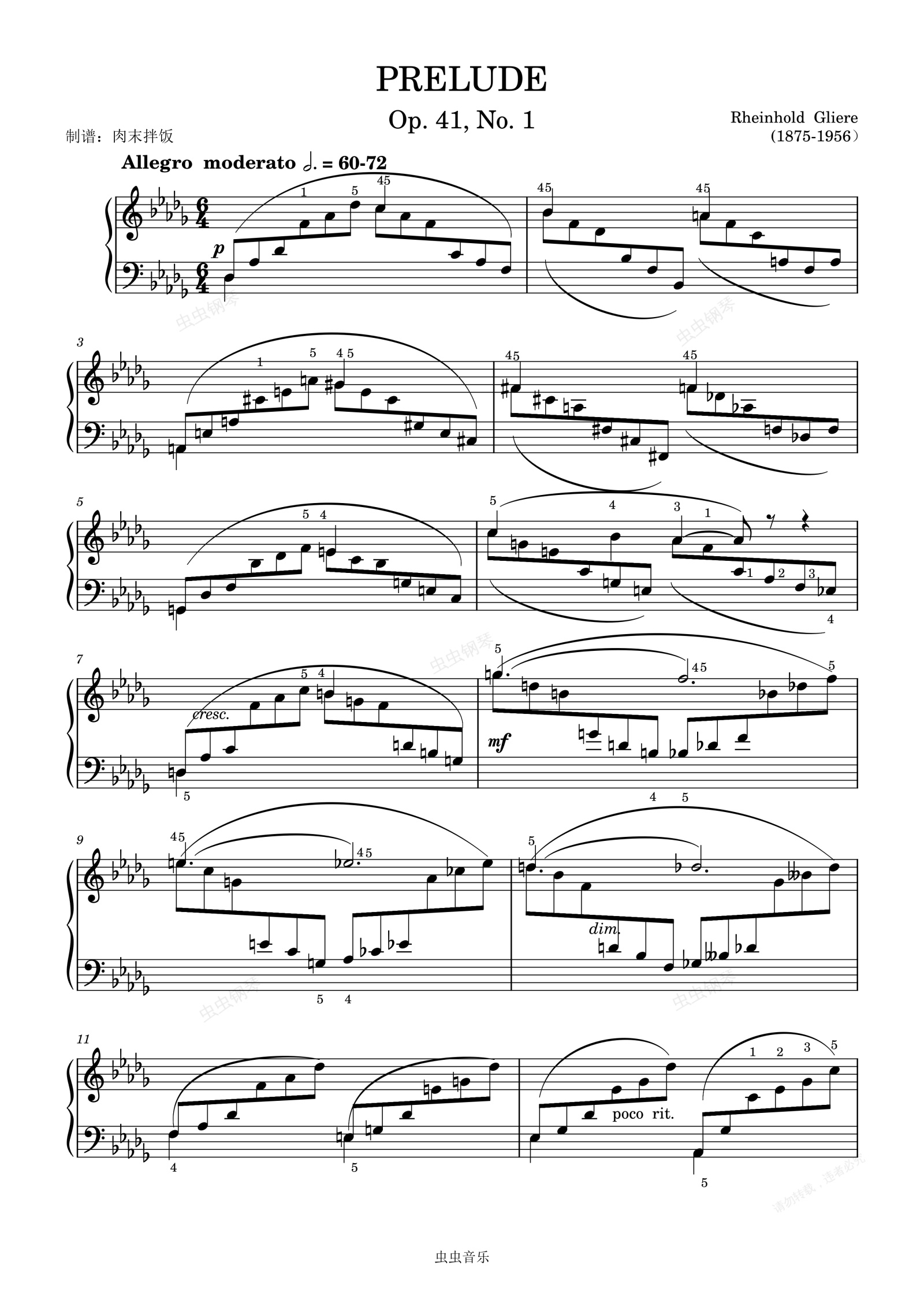 钢琴谱:格里埃尔-前奏曲Op.42,No.1-列恩戈尔德·莫里采维奇·格里埃尔(Rheinhold Gliere)