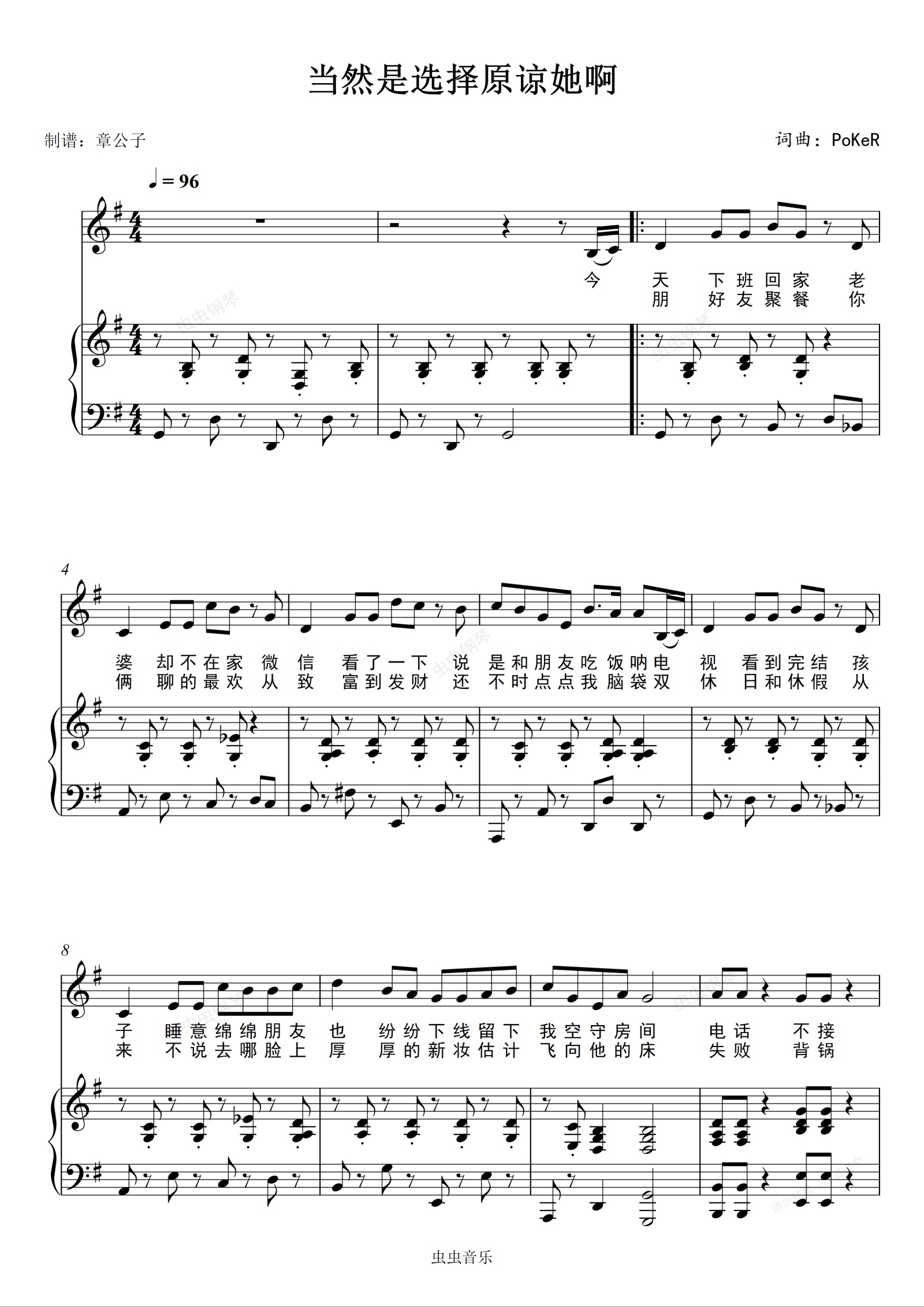钢琴谱:《当然是选择原谅她啊》- KBShinya 弹唱(伴奏)谱