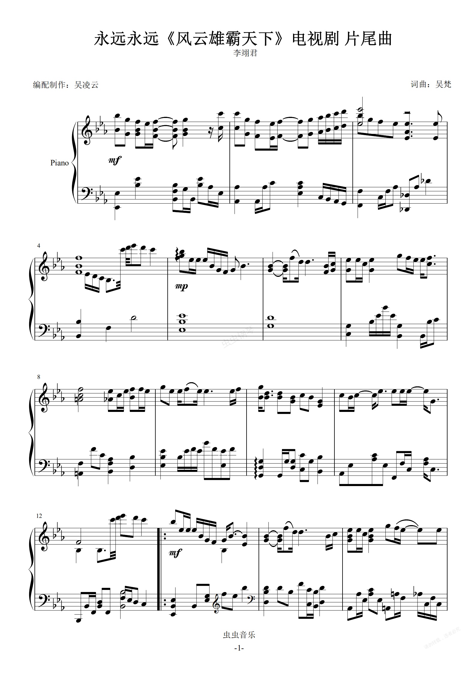 钢琴谱:永远永远《风云雄霸天下》电视剧 片尾曲 吴凌云钢琴演奏版