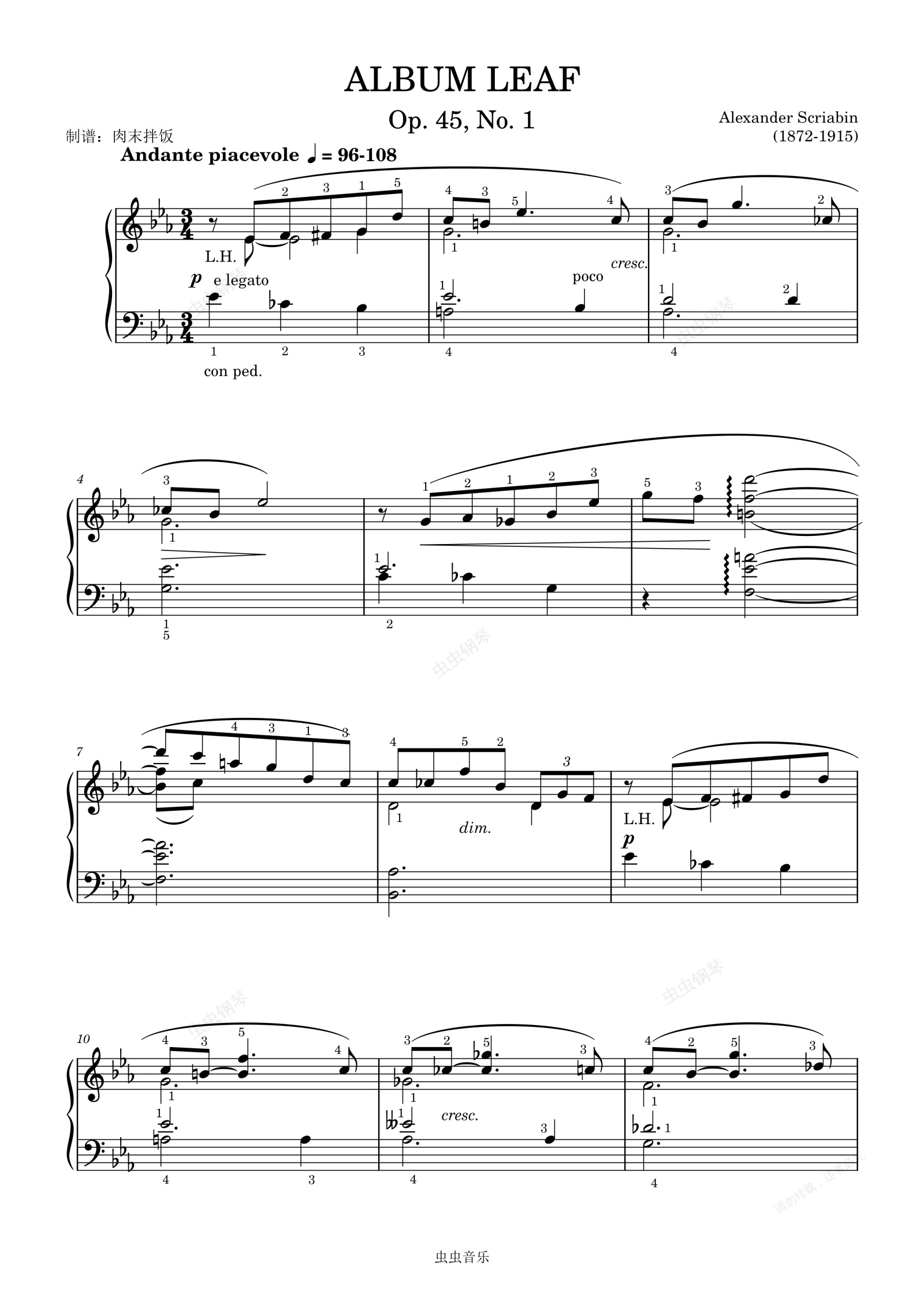 钢琴谱:Album Leaf,Op.45,No.1-亚历山大·斯克里亚宾(Alexander Scriabin)