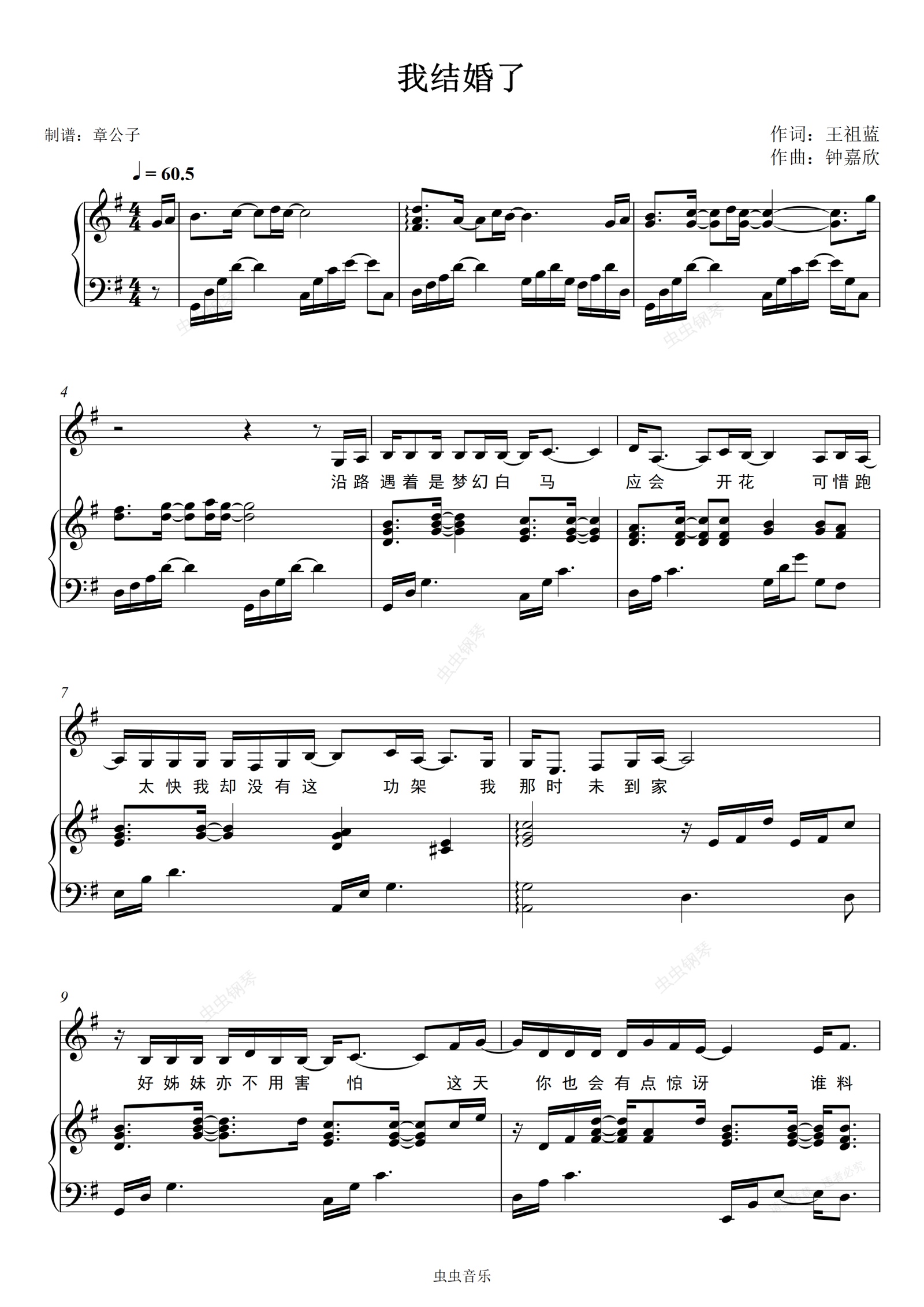 钢琴谱:《我结婚了》- 钟嘉欣 弹唱(伴奏)谱
