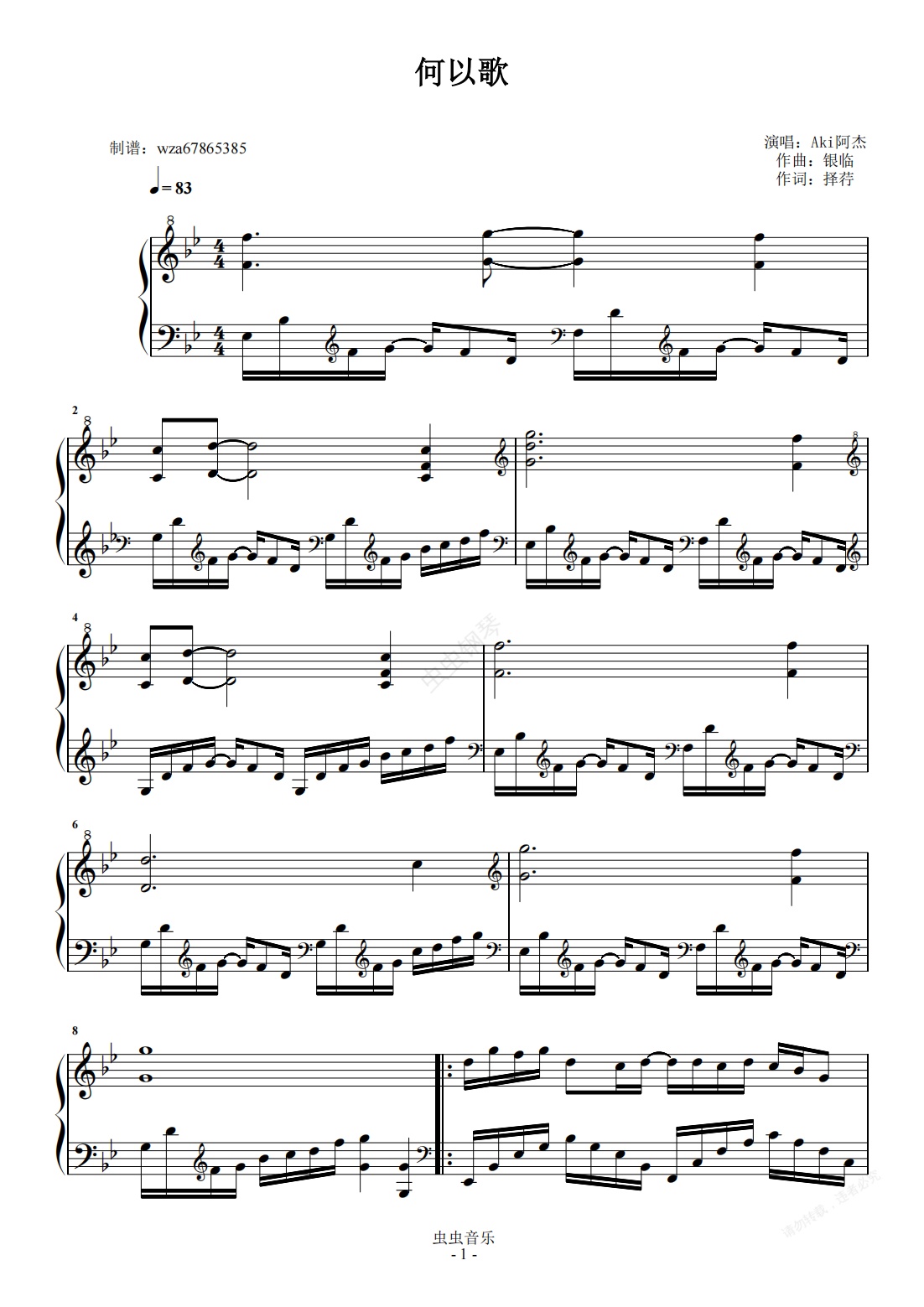 钢琴谱:何以歌