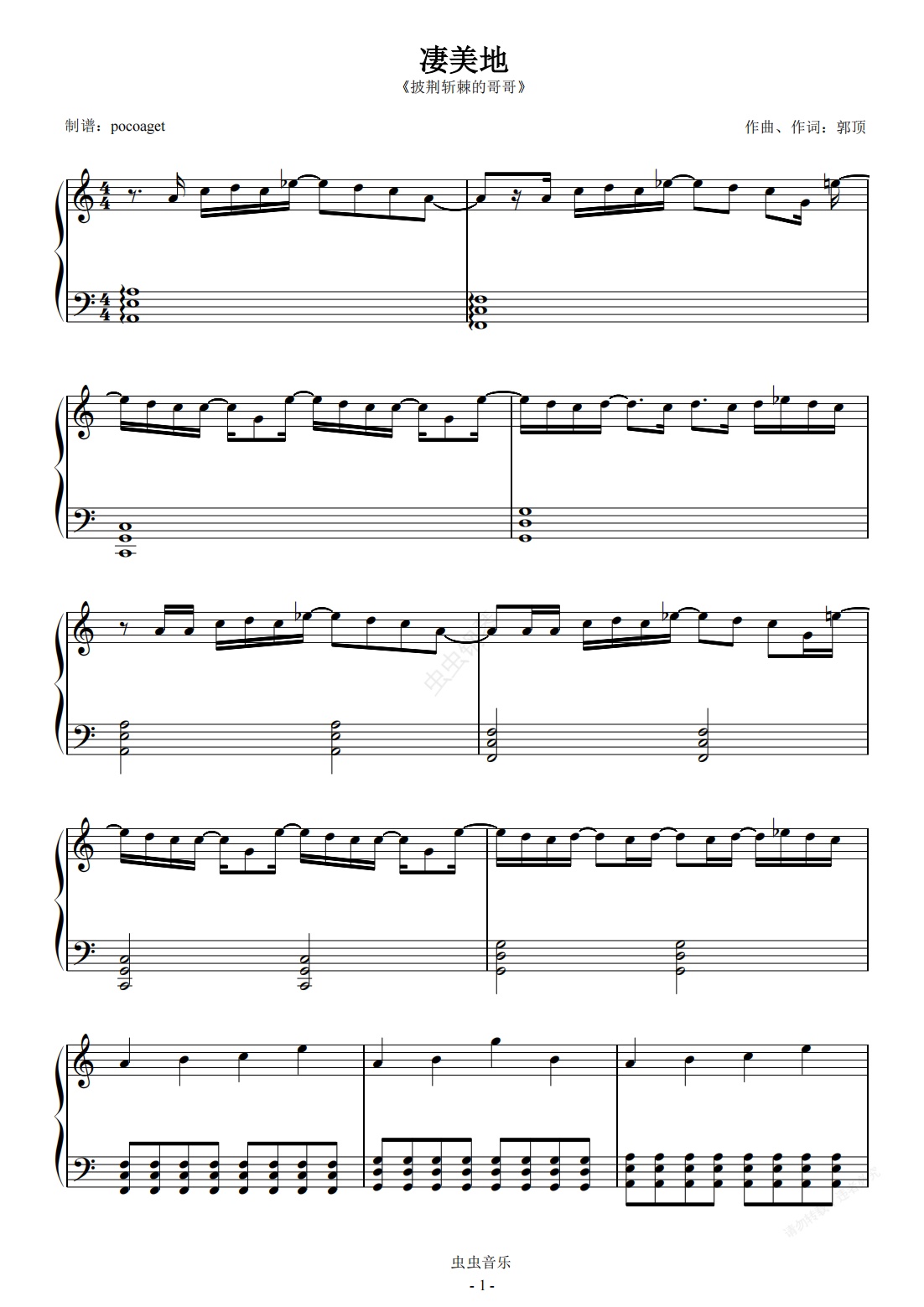 钢琴谱:凄美地‘披荆斩棘的哥哥’完整版(POC编配)郭顶初学者