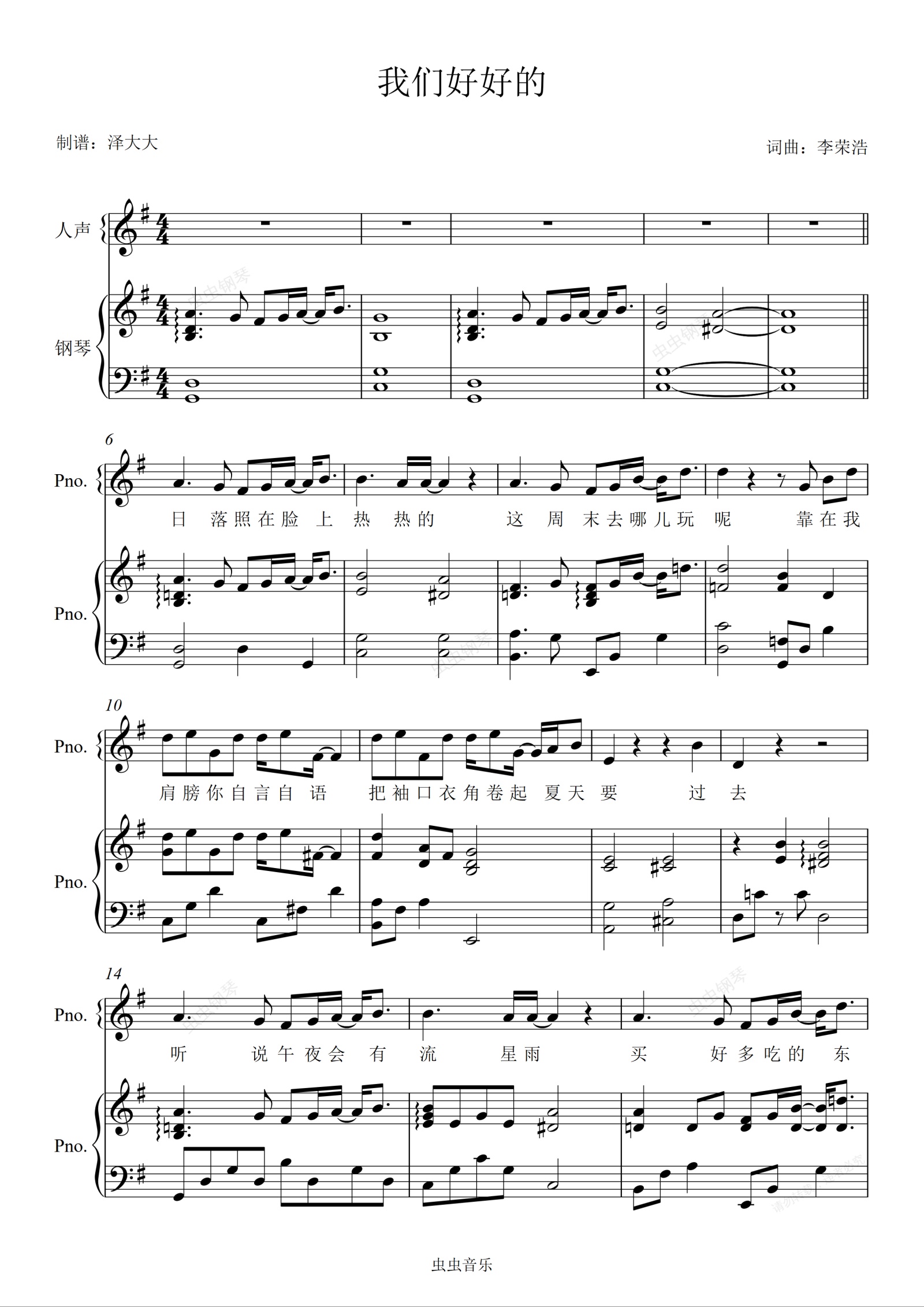 钢琴谱:我们好好的【完美弹唱附词】泽大大 李荣浩