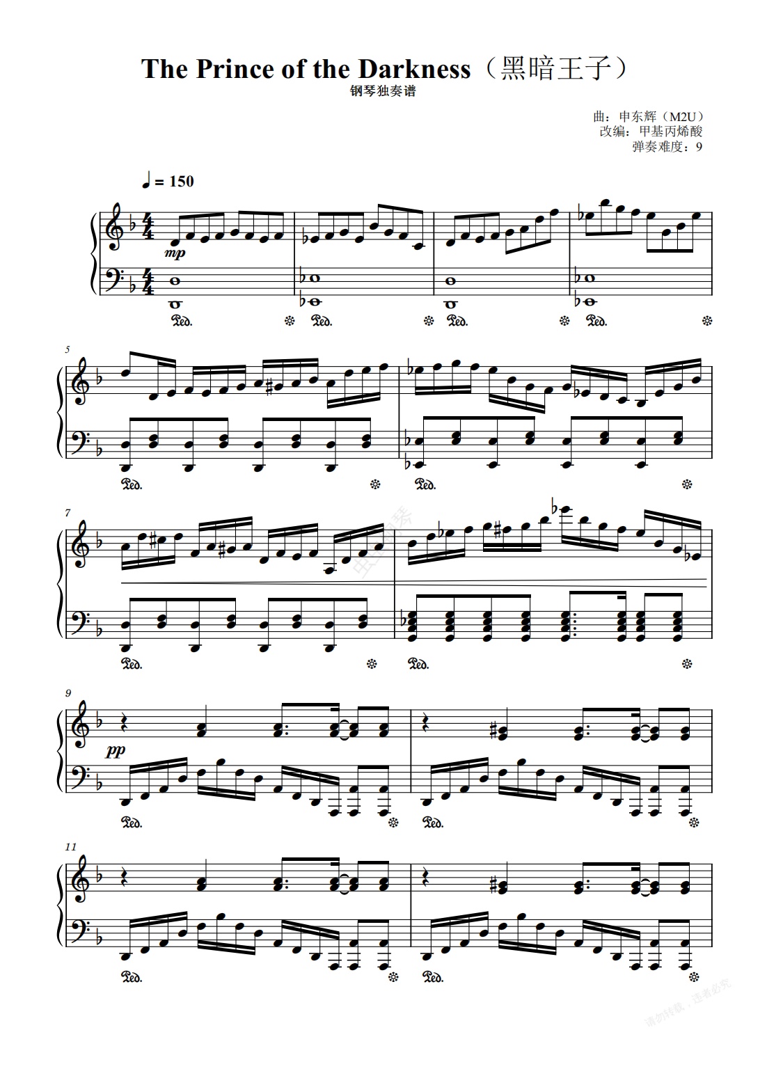 钢琴谱:The Prince of The Darkness(黑暗王子)钢琴独奏谱