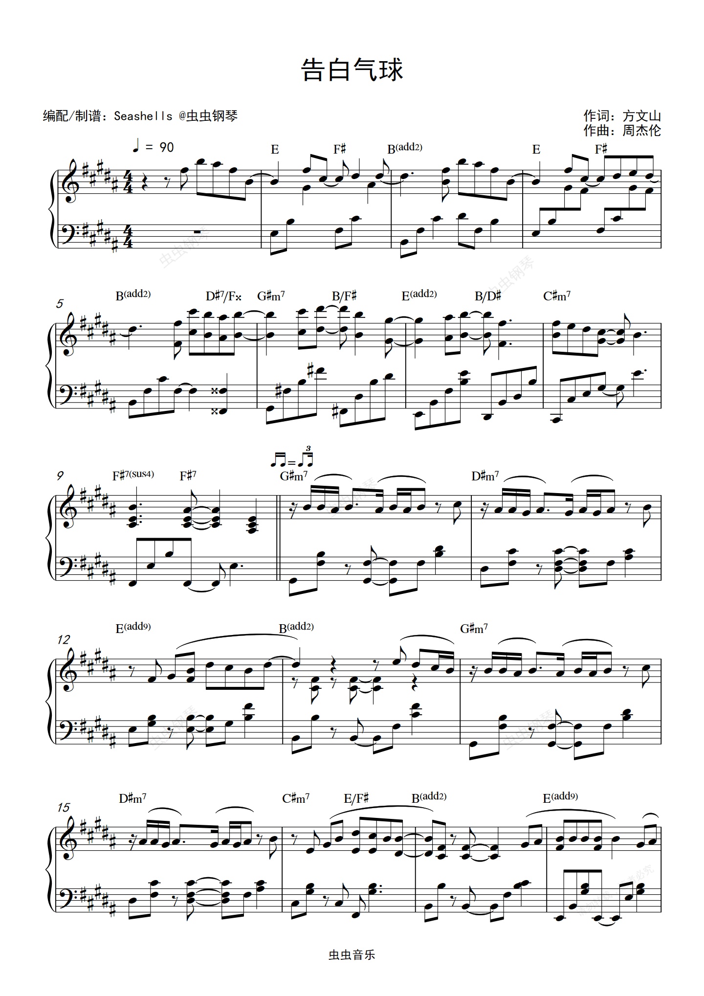 钢琴谱:周杰伦-《告白气球》B大调 精编钢琴独奏
