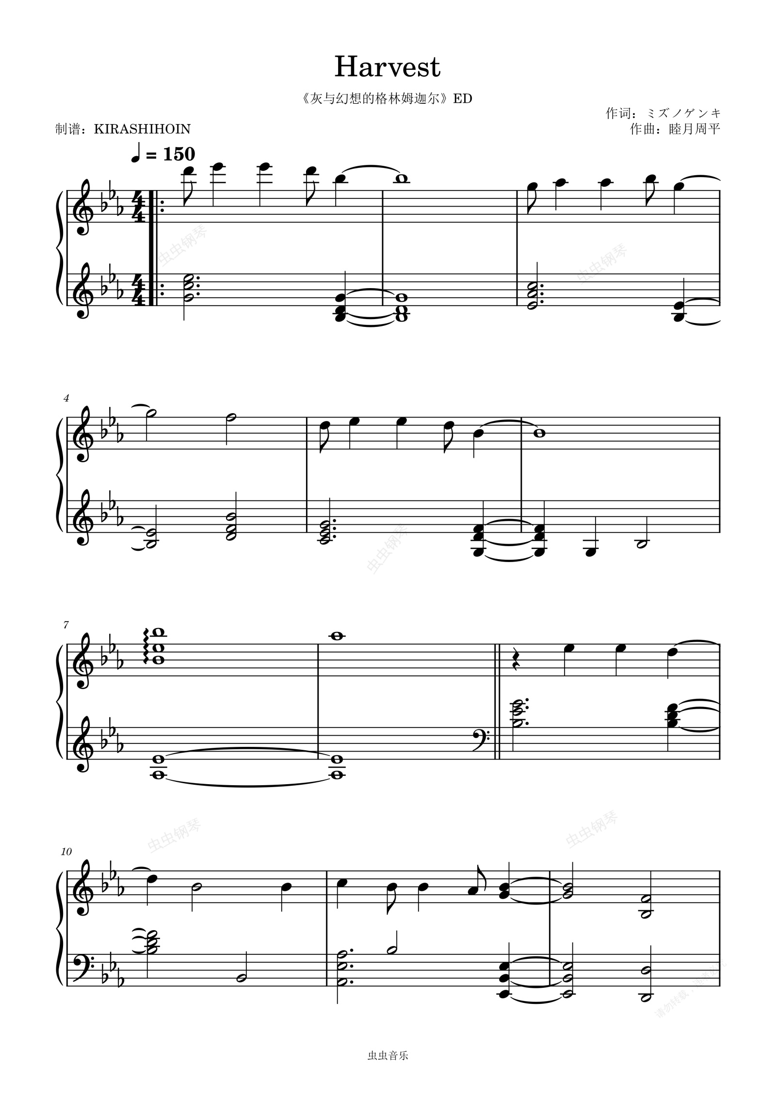 钢琴谱:Harvest/收获(《灰与幻想的格林姆迦尔》ED/片尾曲)- (K)NoW_NAME (ノウネイム)/NIKIIE (ニキー)