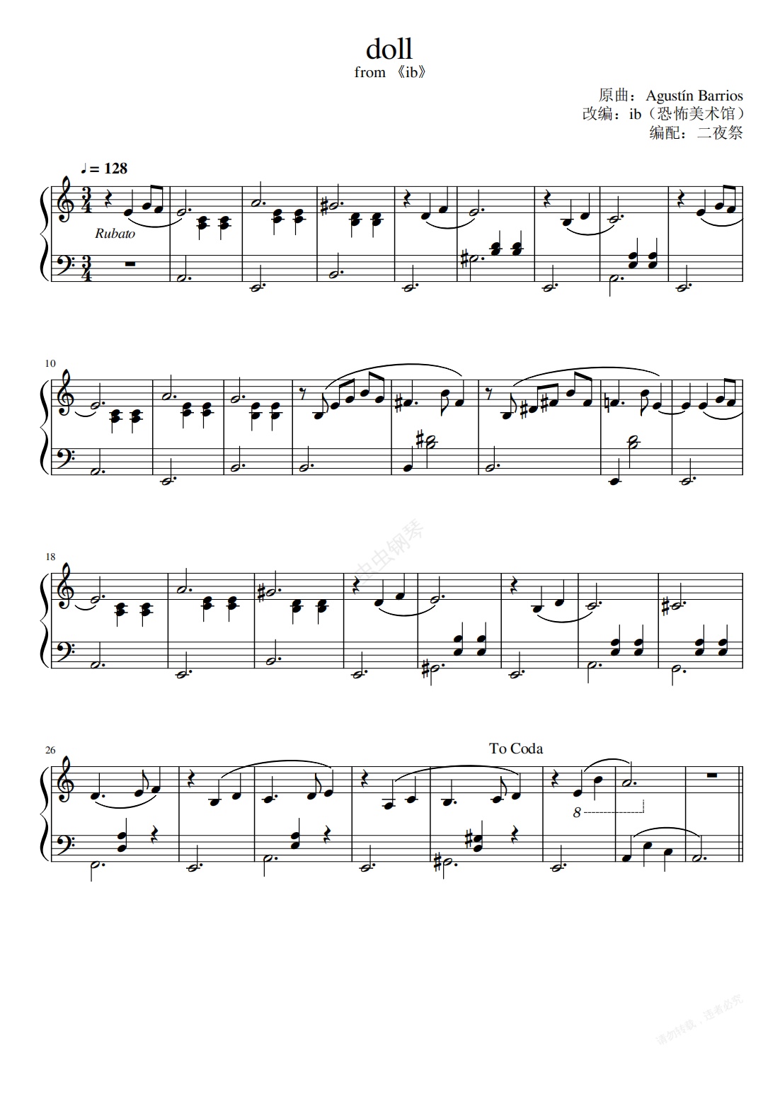钢琴谱:【Ib / 恐怖美术馆】doll(game over曲)
