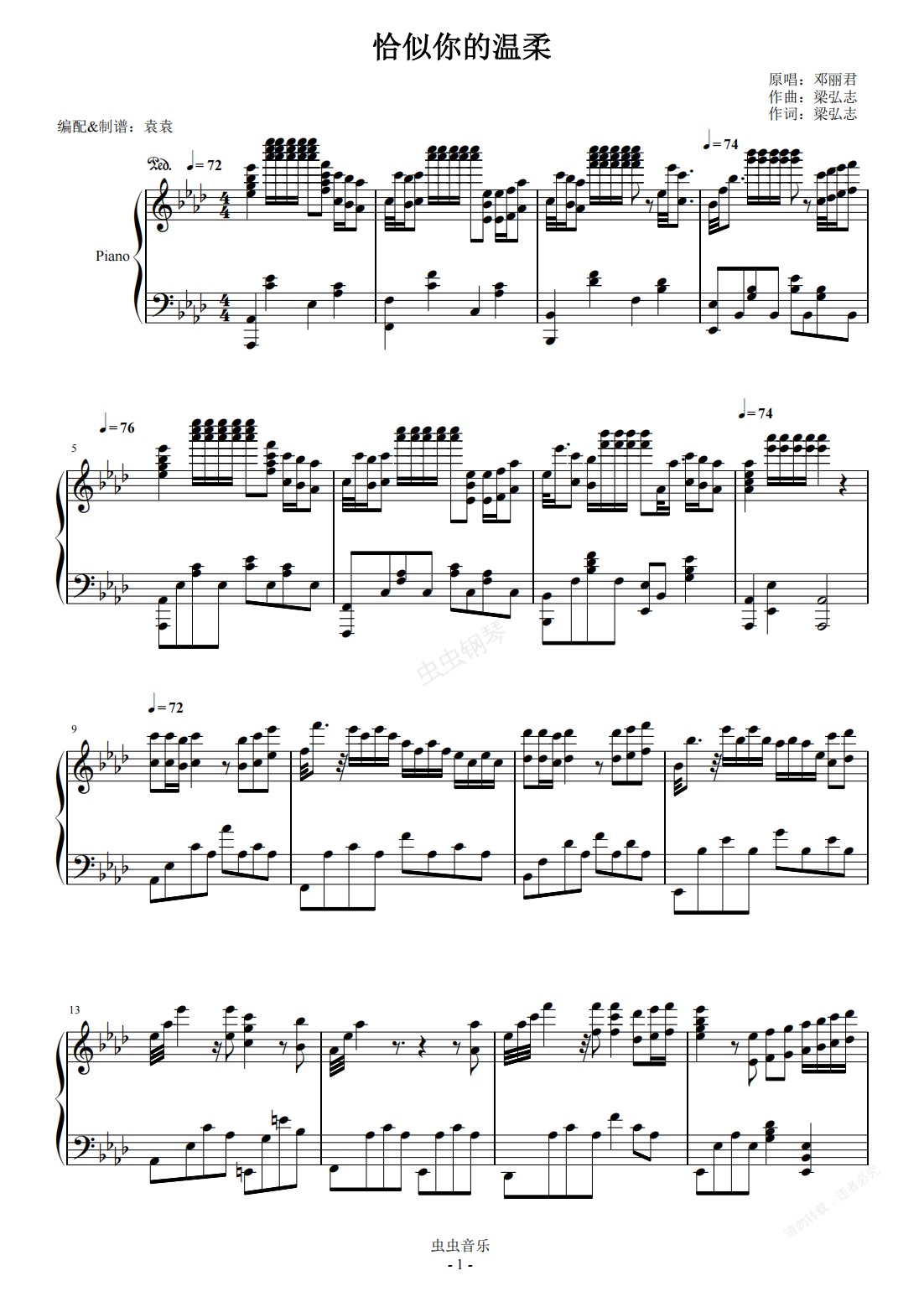 钢琴谱:恰似你的温柔