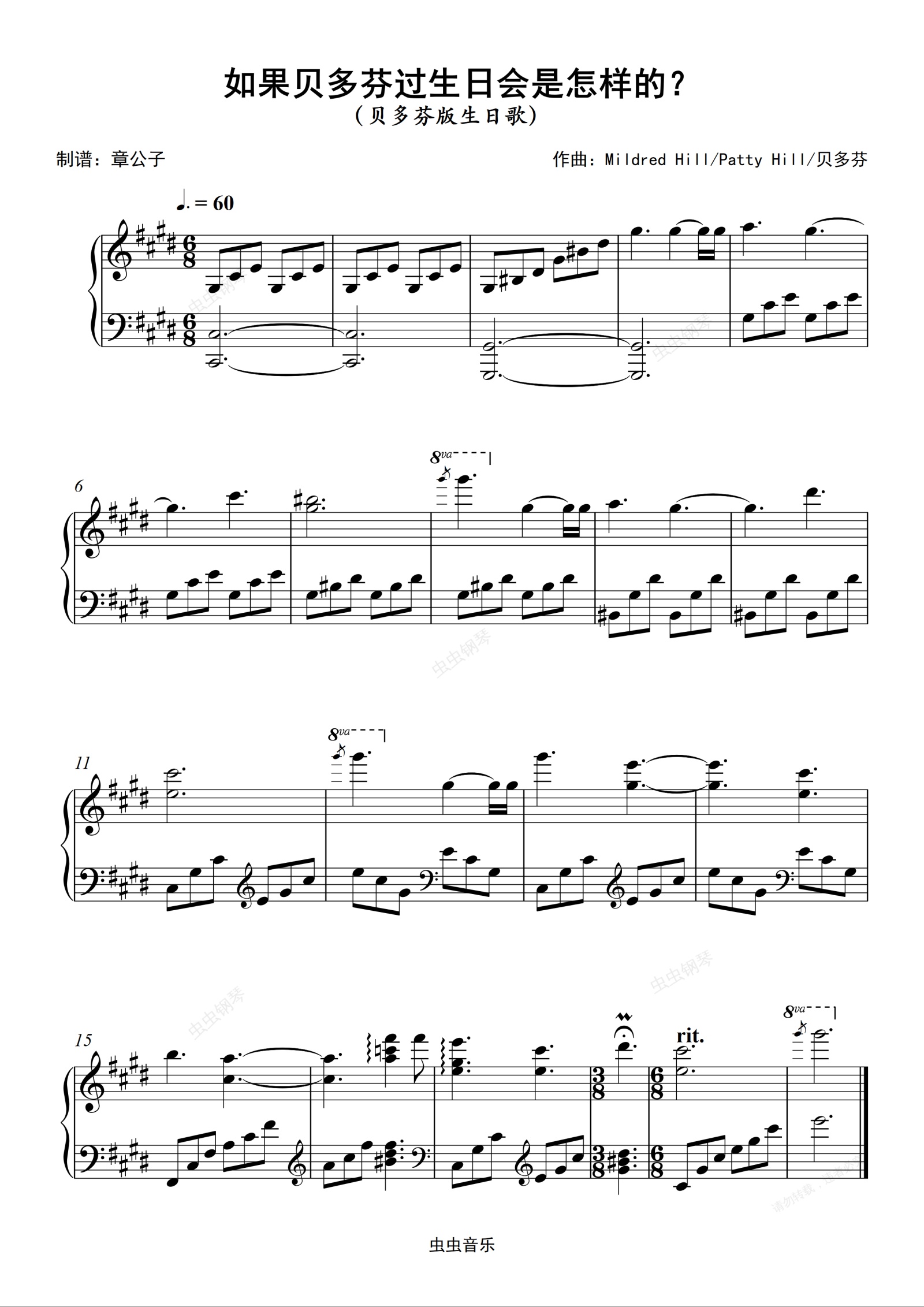 钢琴谱:《祝你生日快乐》如果是贝多芬写的 独奏谱