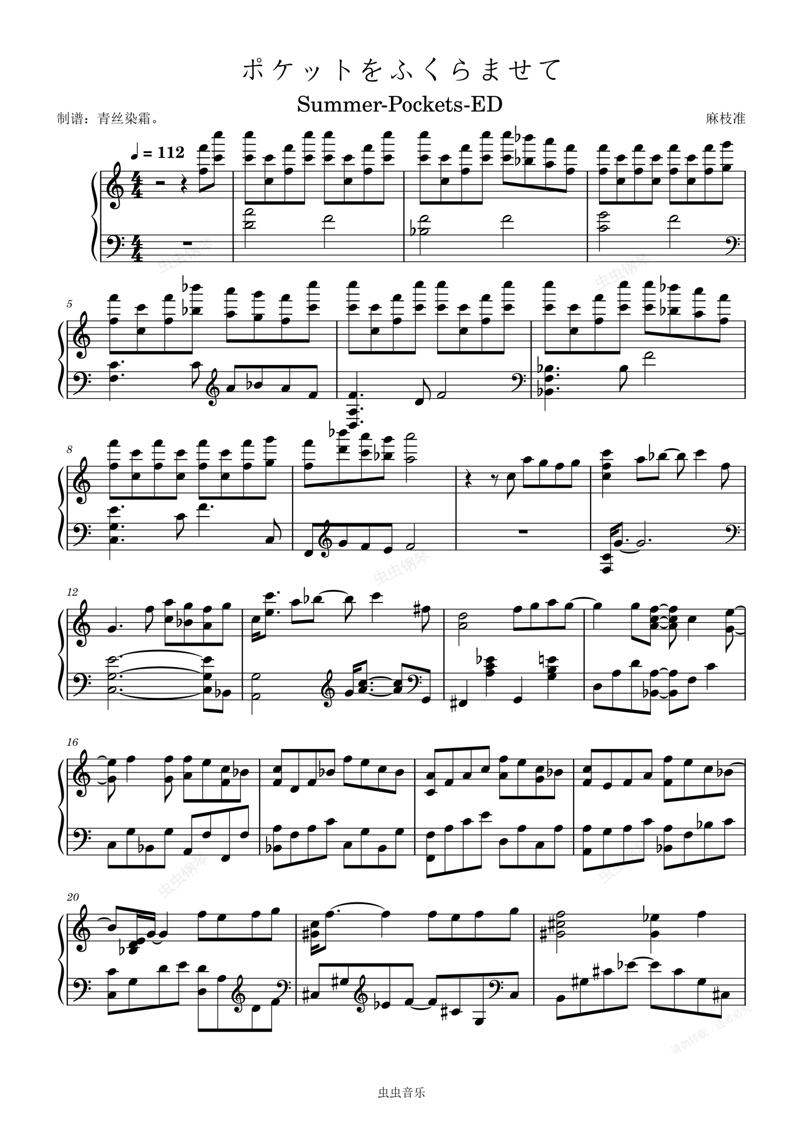 钢琴谱:ポケットをふくらませて-Summer-Pockets-ED