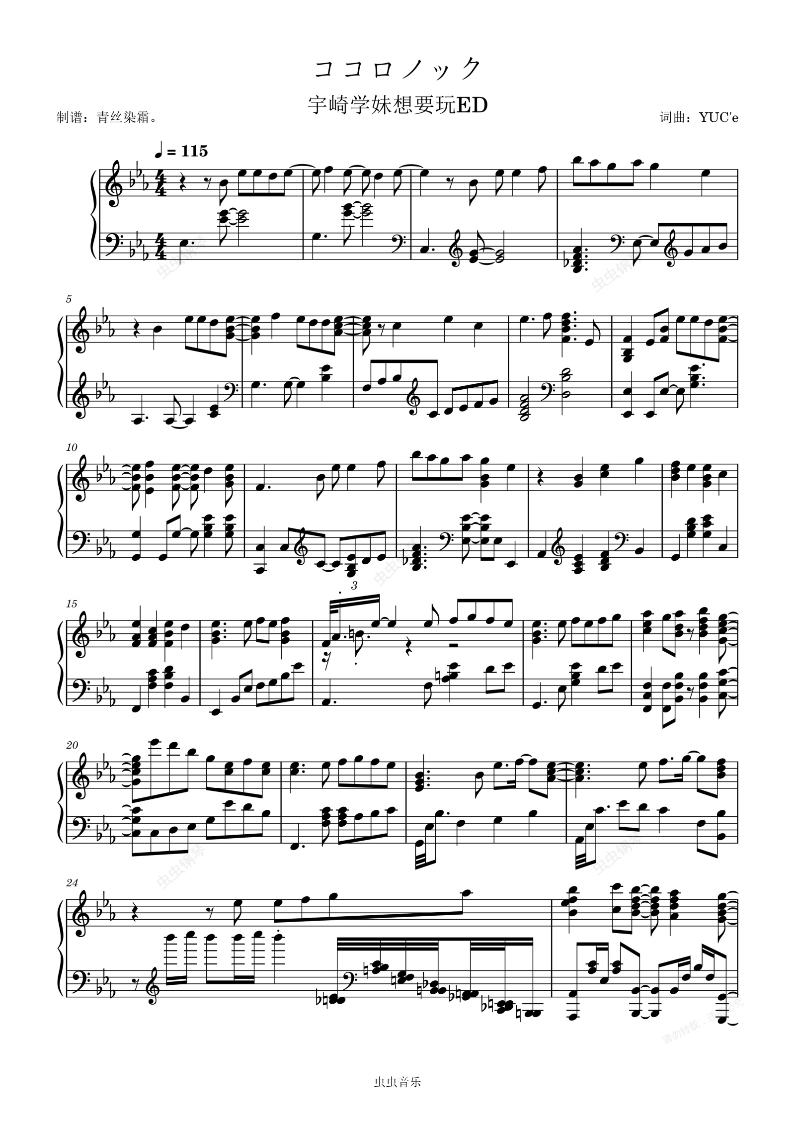 钢琴谱:ココロノック-宇崎学妹想要玩ED
