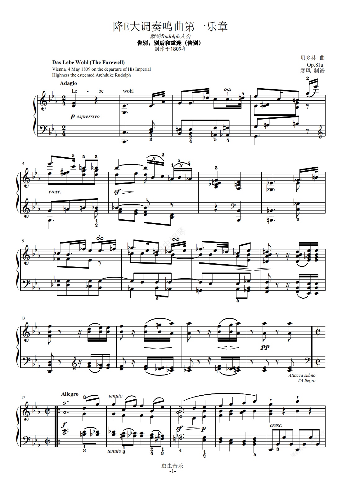 钢琴谱:贝多芬-降E大调告别奏鸣曲第一乐章
