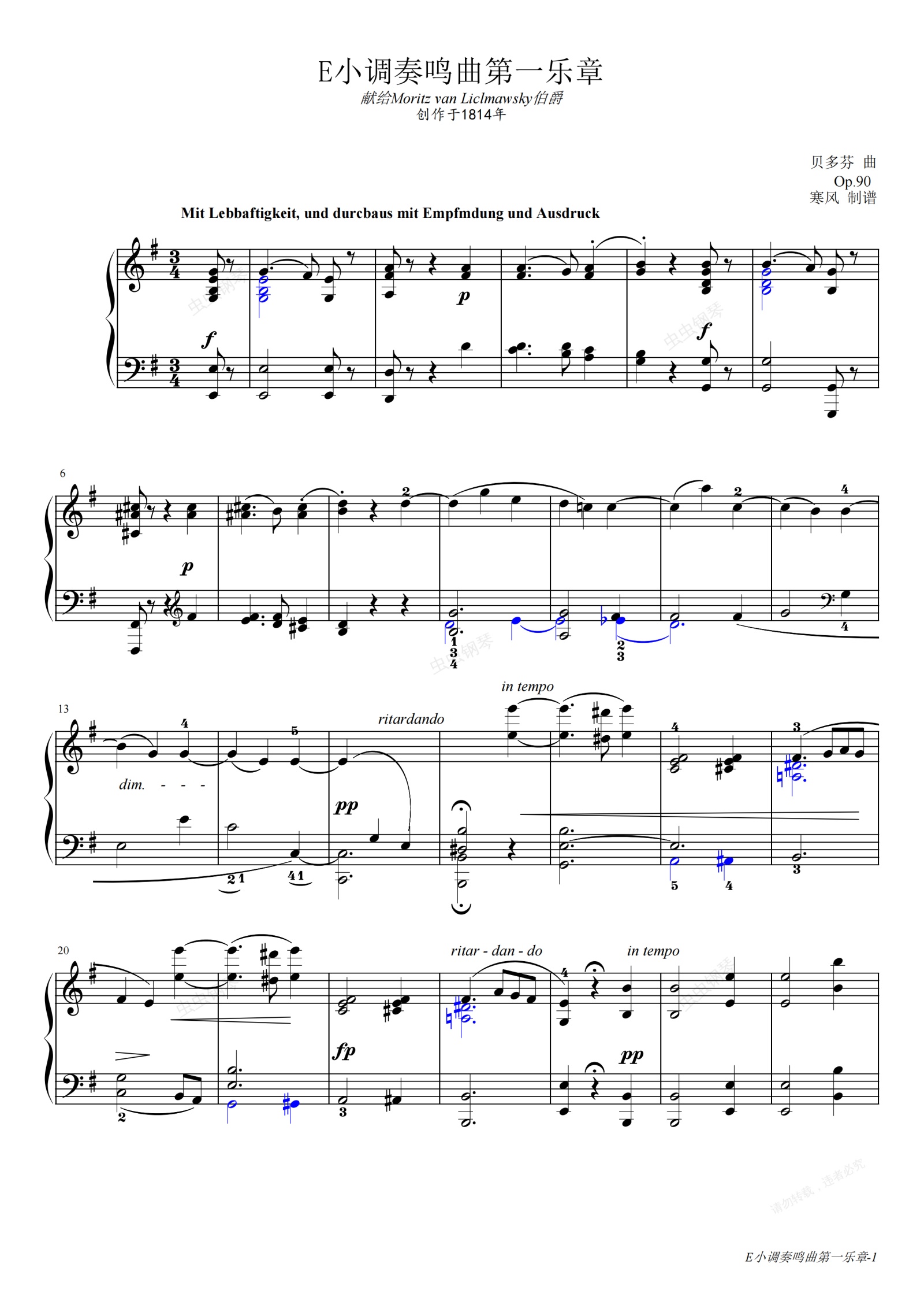 钢琴谱:贝多芬-E小调奏鸣曲第一乐章