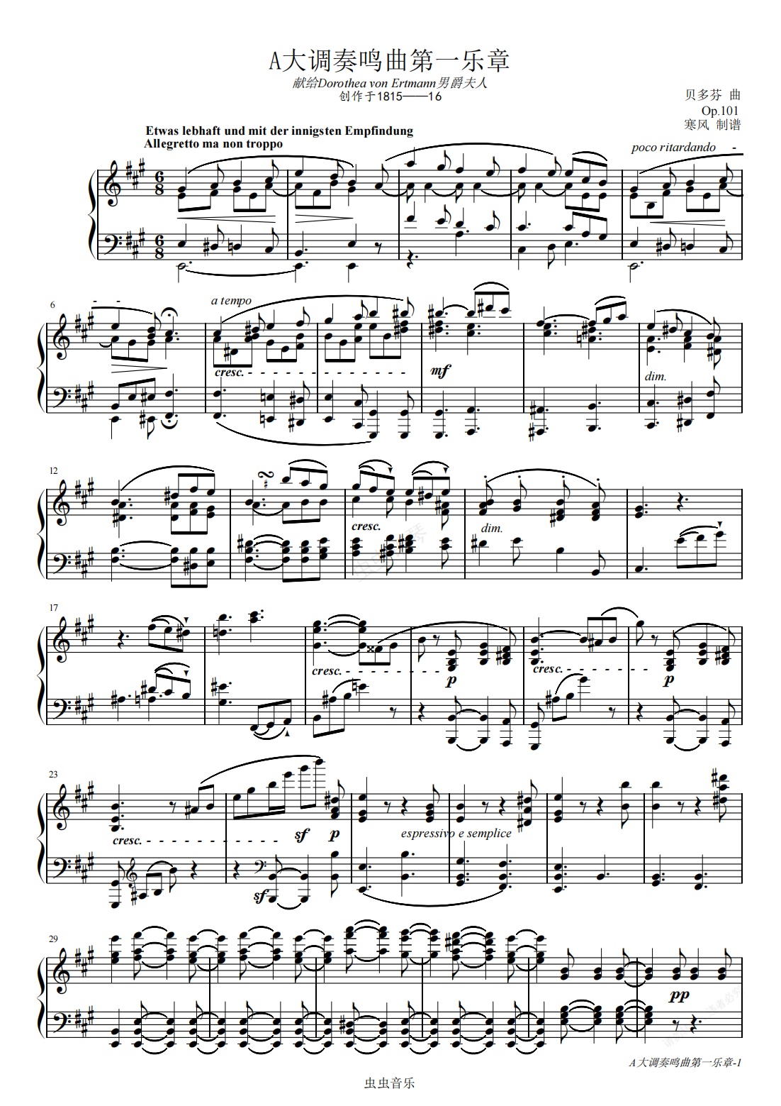 钢琴谱:贝多芬-A大调奏鸣曲第一乐章