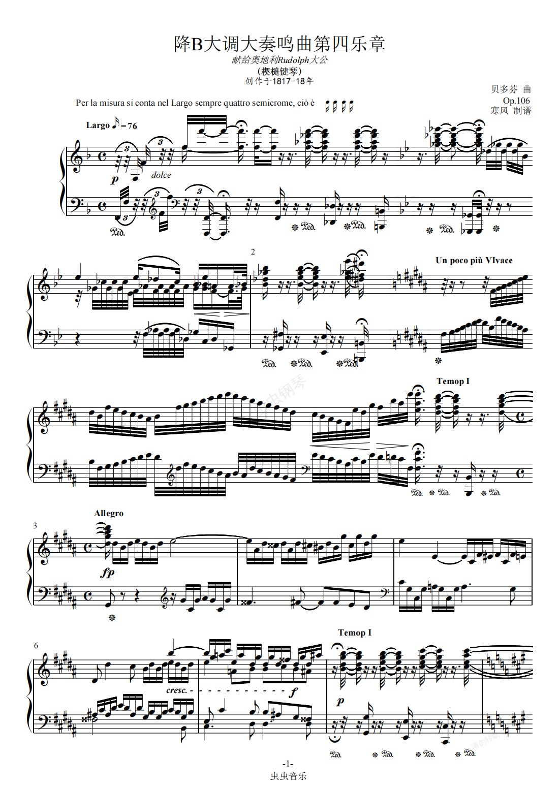 钢琴谱:贝多芬-降B大调大奏鸣曲(楔槌琴键)第四乐章