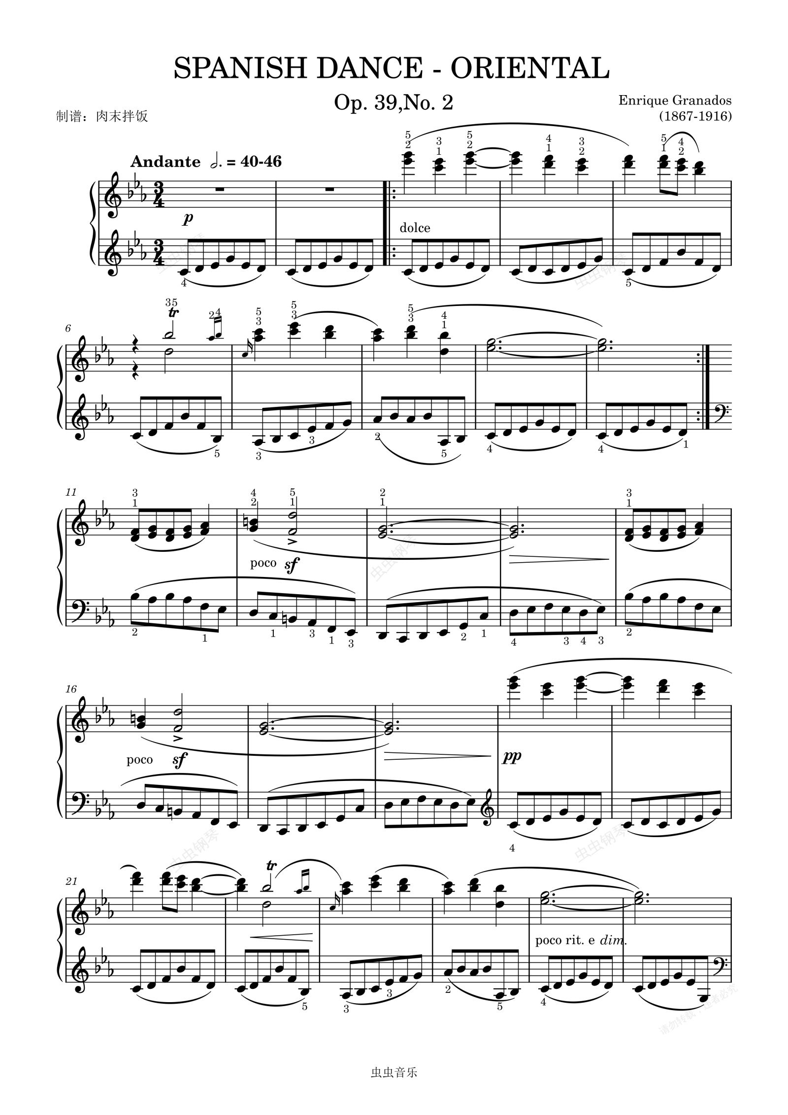 钢琴谱:西班牙随想曲Op. 39,No.2(SPANISH DANCE - ORIENTAL)-恩里克·格拉纳多斯(Enrique Granados)