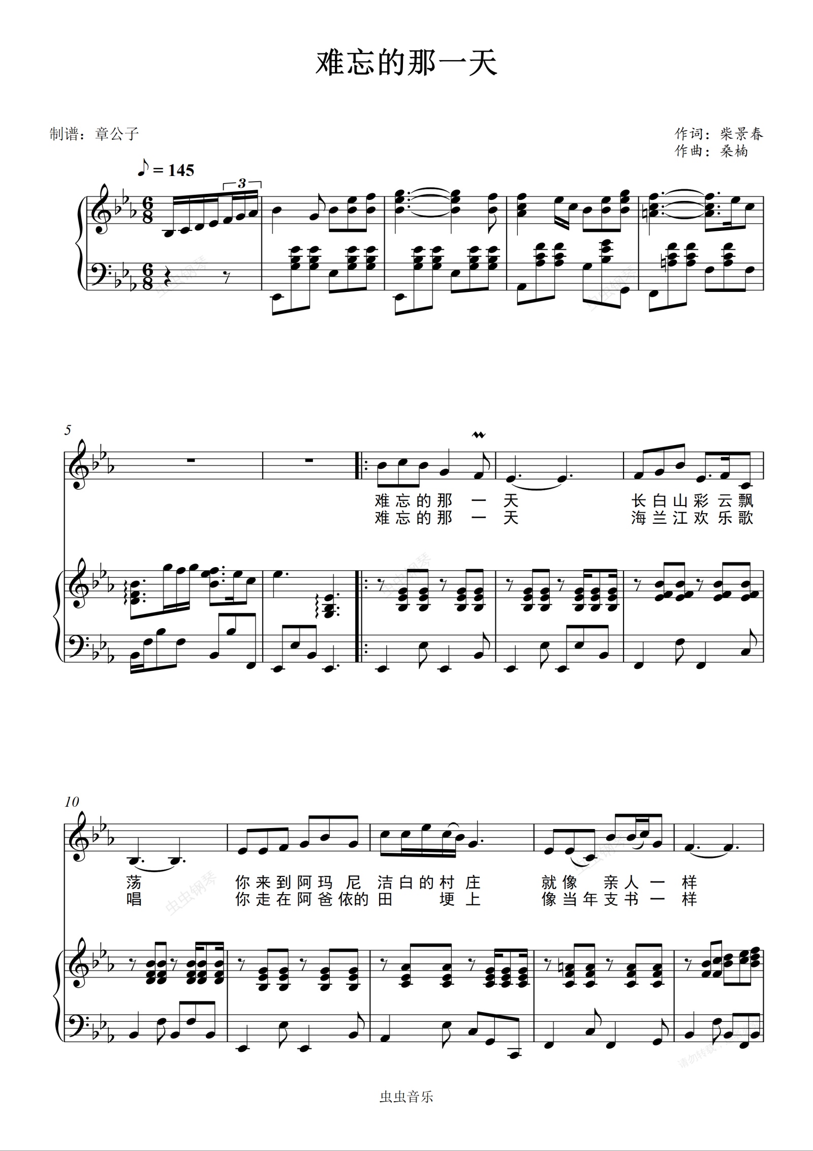 钢琴谱:《难忘的那一天》- 金婷婷 弹唱(伴奏)谱