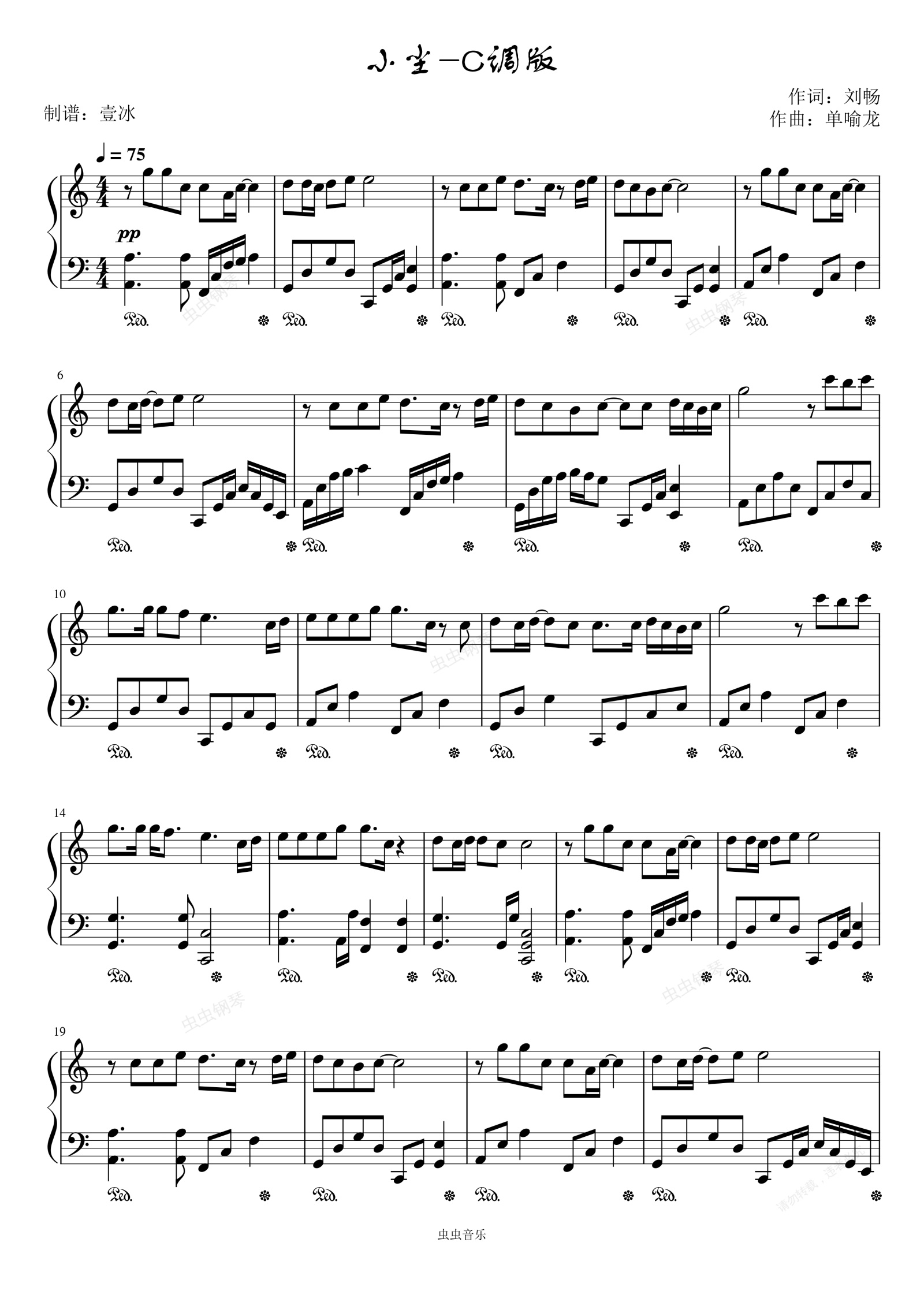 钢琴谱:小尘//《与君歌》插曲 双笙-C调版