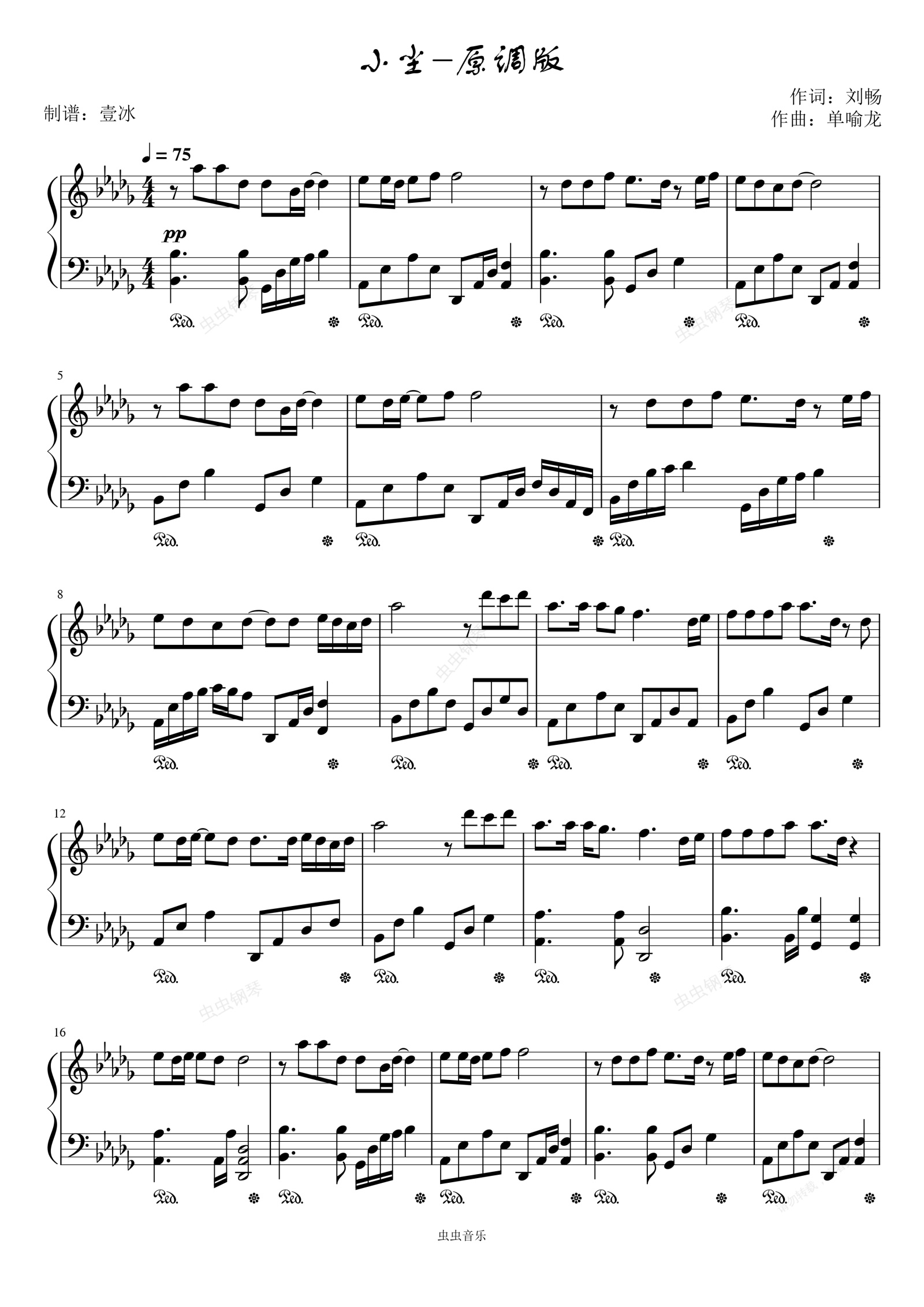 钢琴谱:小尘//《与君歌》插曲 双笙-原调版