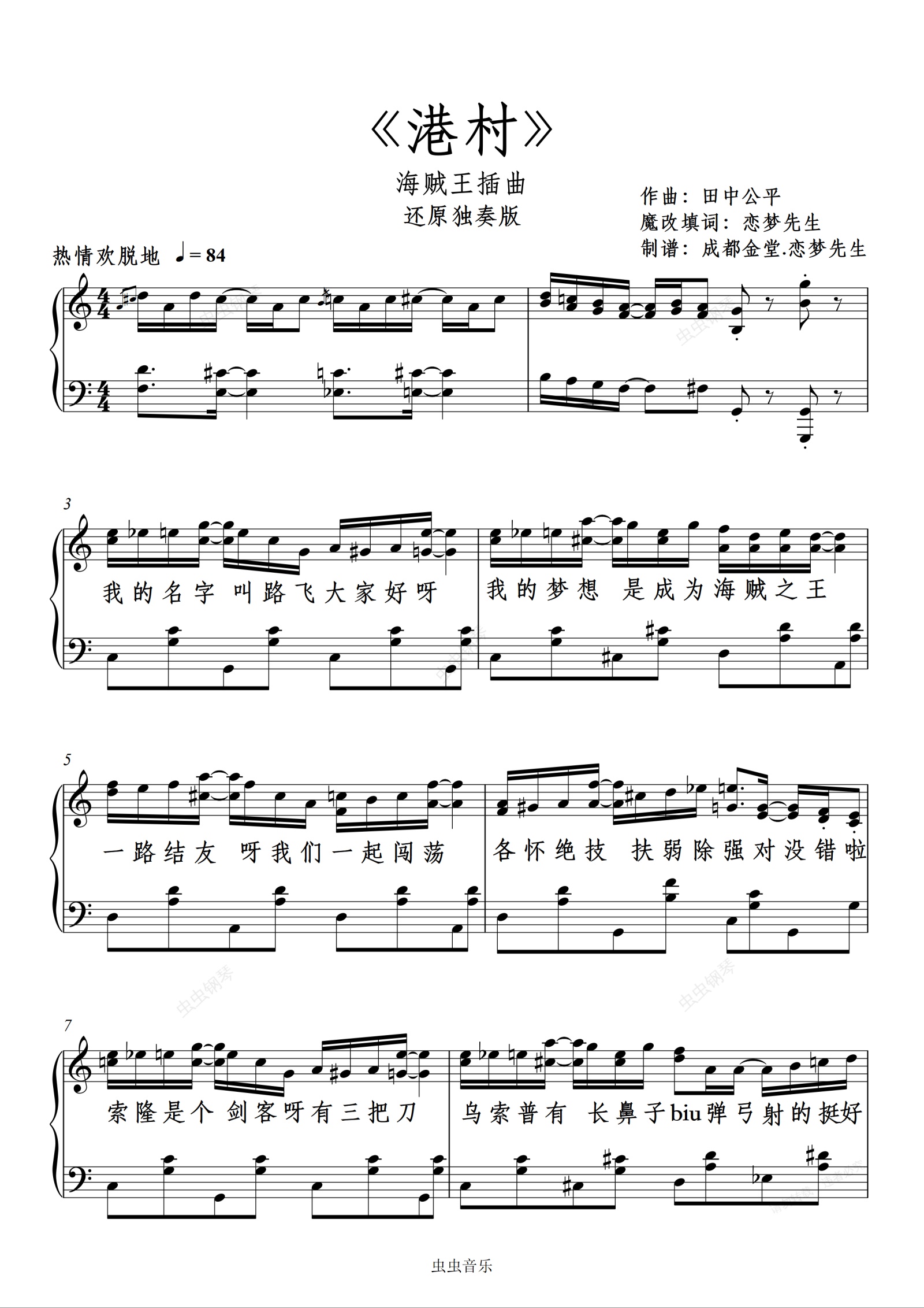 钢琴谱:《港村》海贼王插曲-魔填歌词