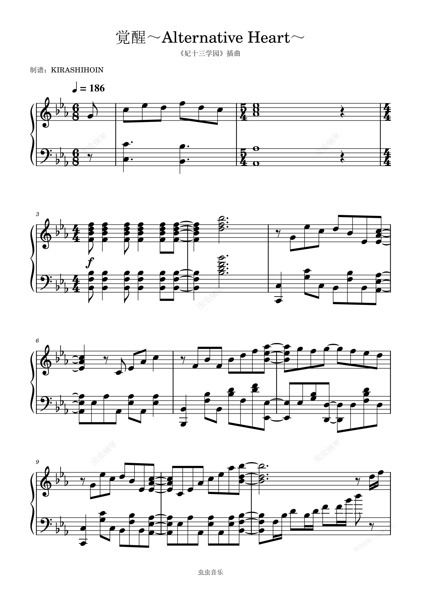 钢琴谱:覚醒~Alternative Heart~(《妃十三学园》插曲)