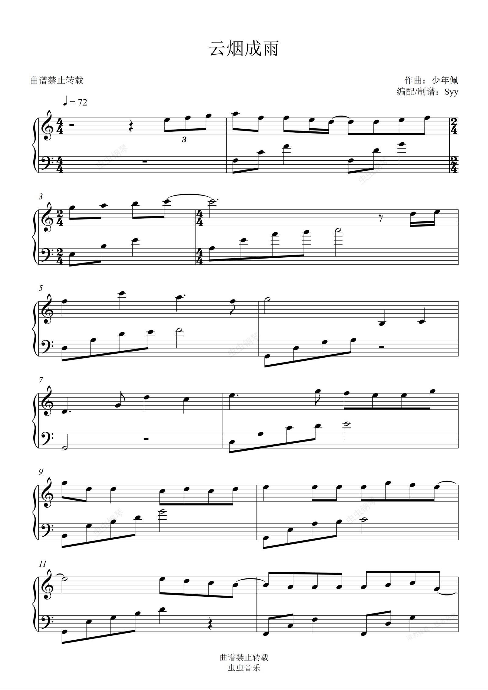 钢琴谱:好听易弹【云烟成雨】房东的猫《我是江小白》OST