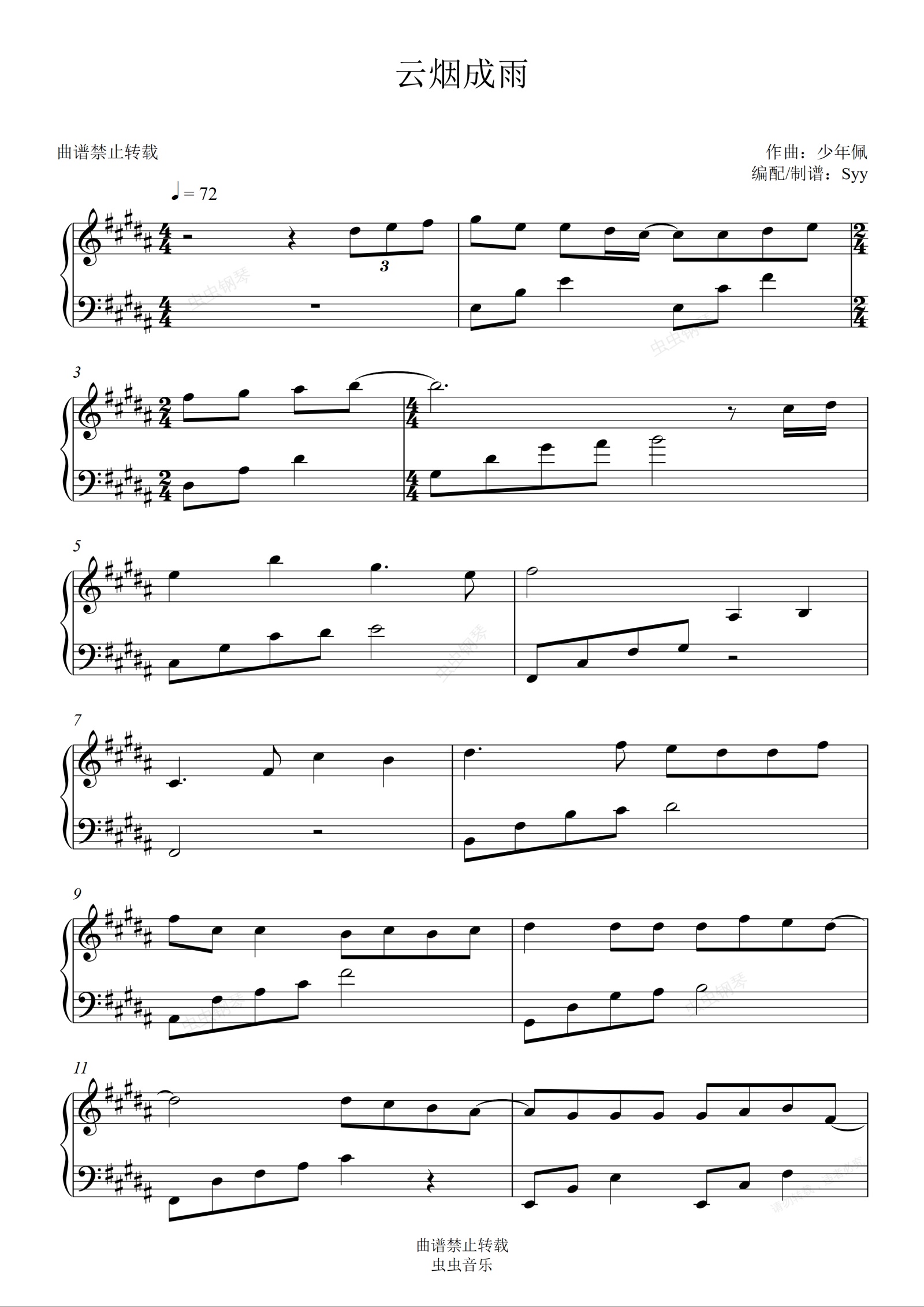 钢琴谱:好听易弹【云烟成雨】房东的猫《我是江小白》OST
