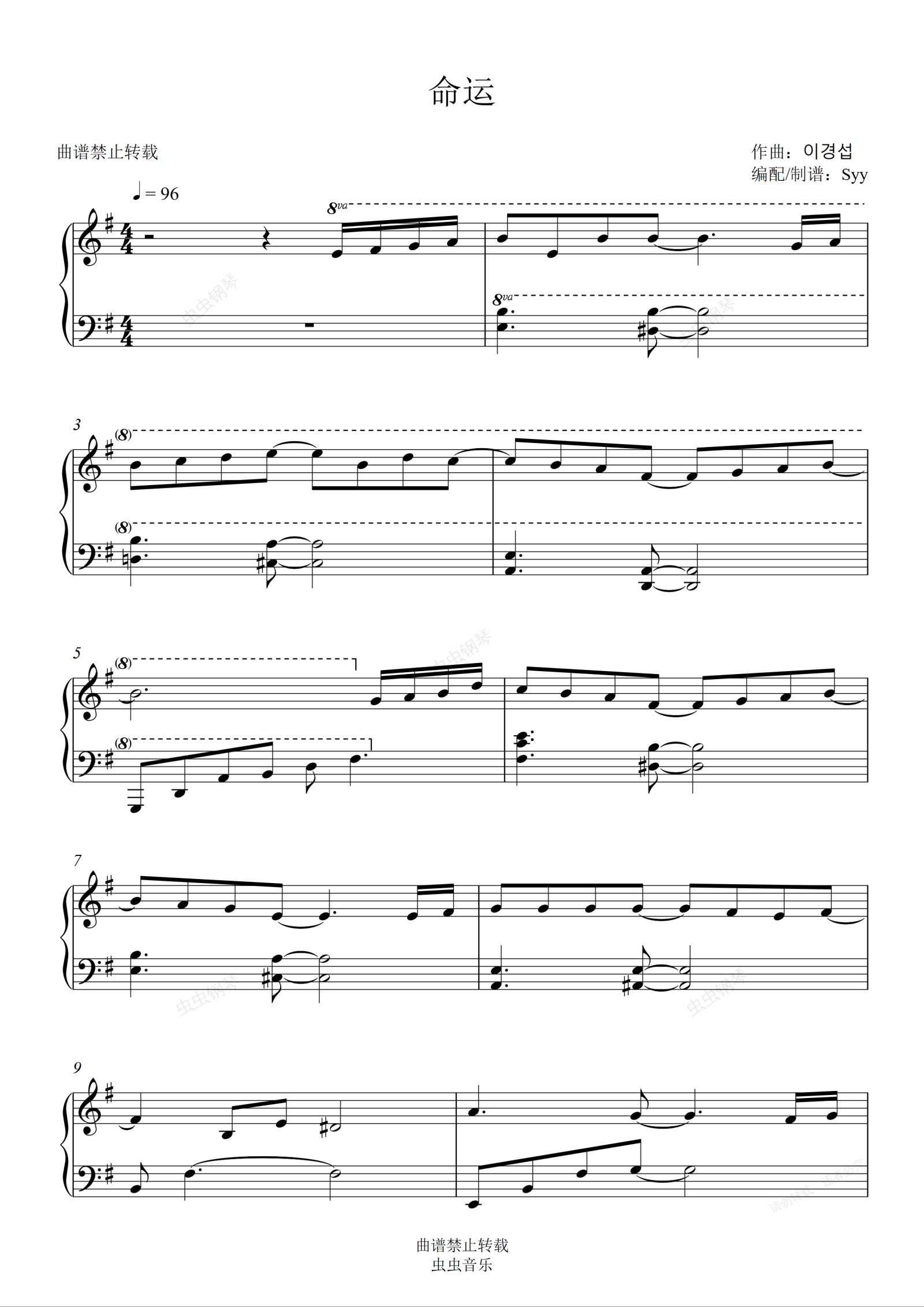 钢琴谱:好听易弹【命运】李景燮《浪漫满屋Full House》OST