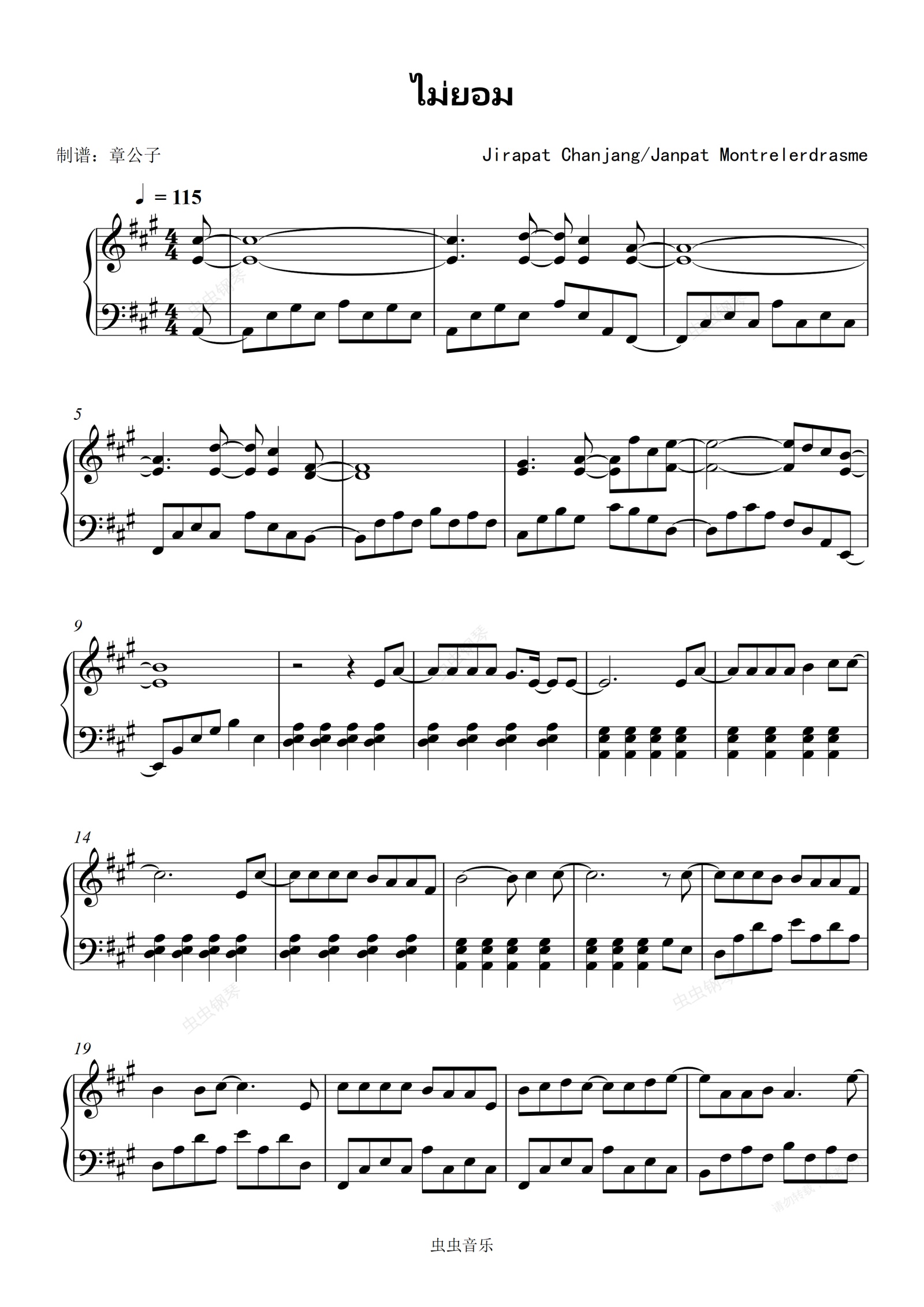 钢琴谱:《ไม่ยอม》拒绝(《与爱同居》插曲) - Kaownah Kittipat 独奏谱