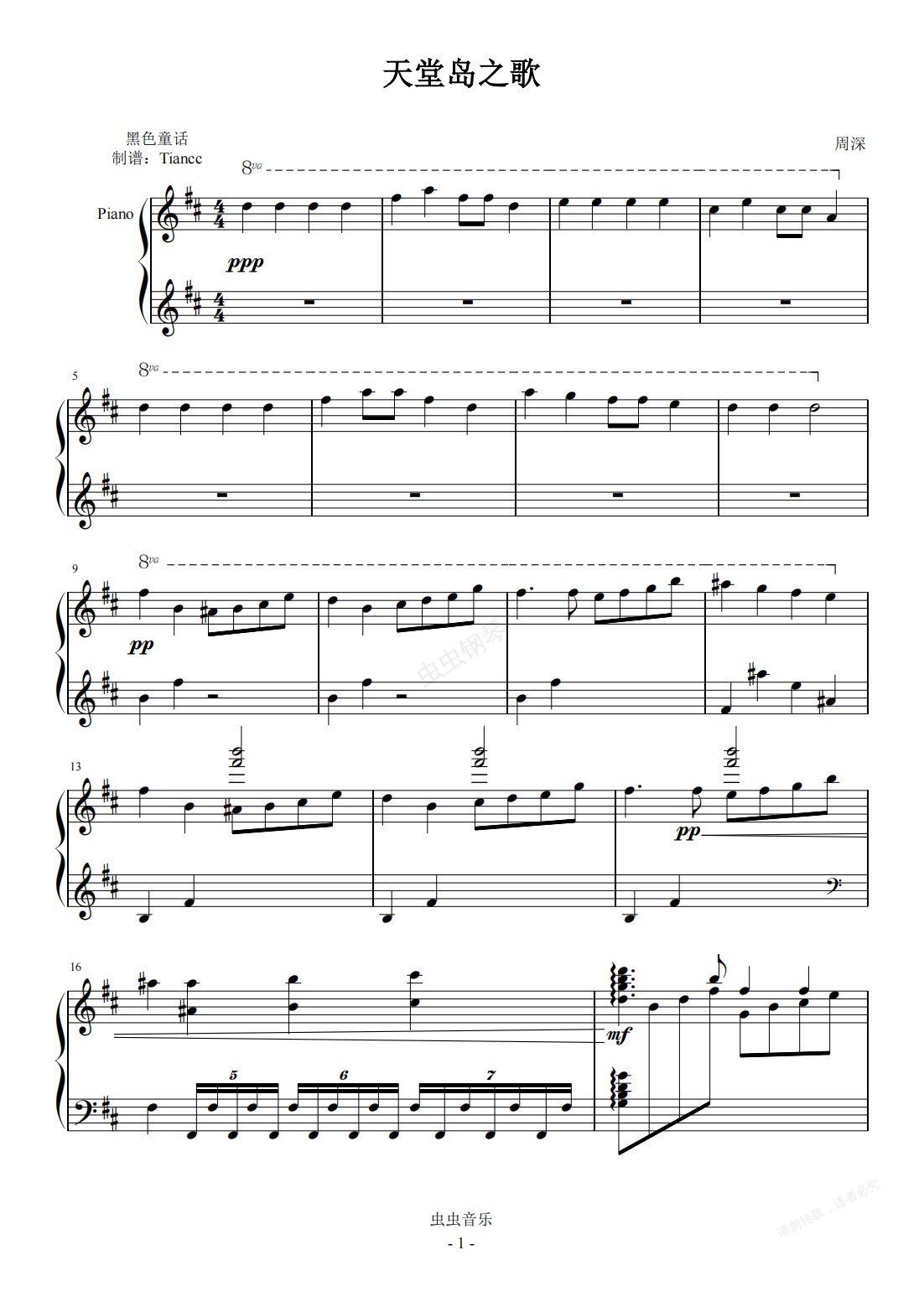 钢琴谱:《天堂岛之歌》周深,钢琴演绎黑色童话,740难度